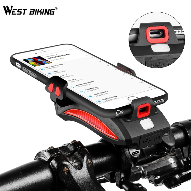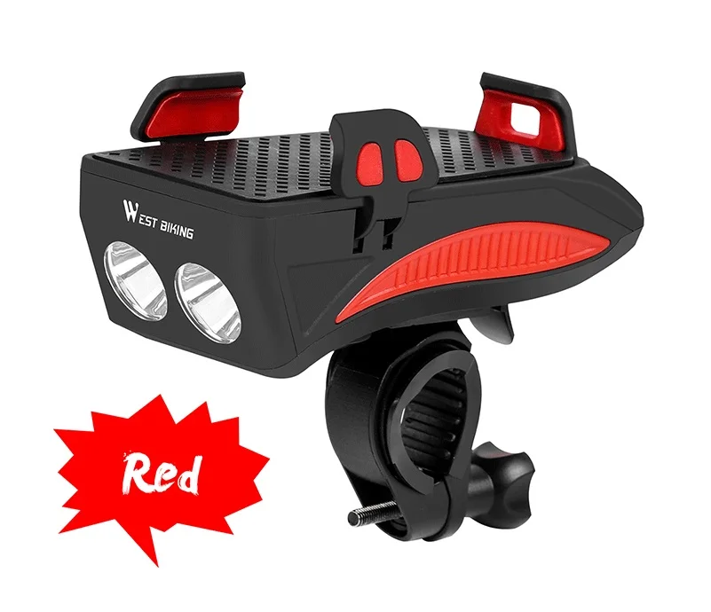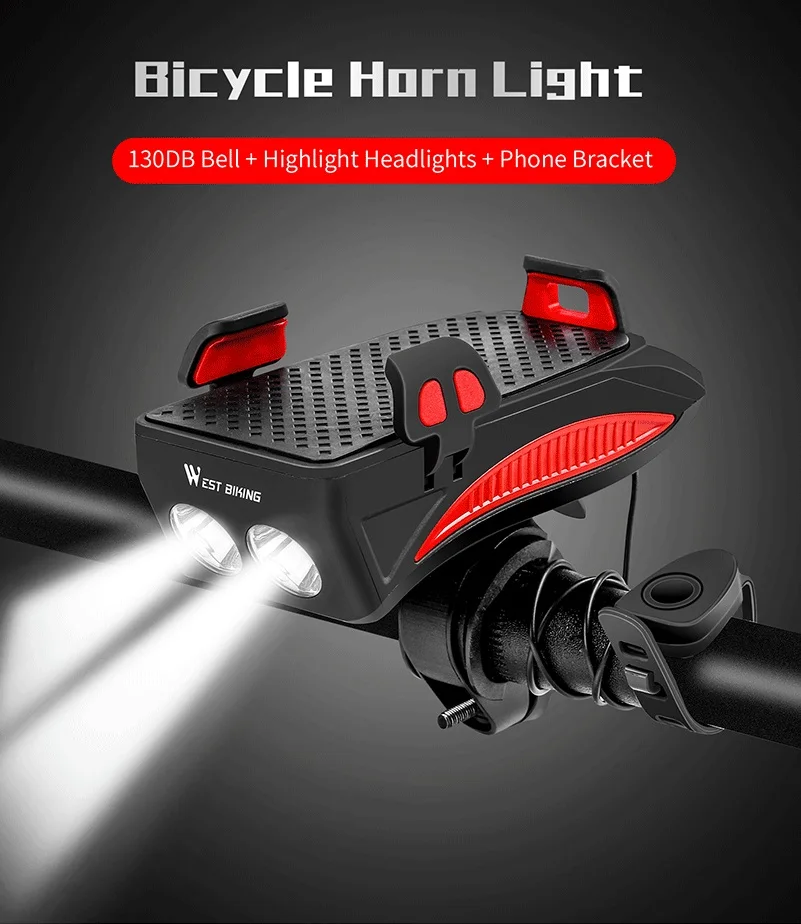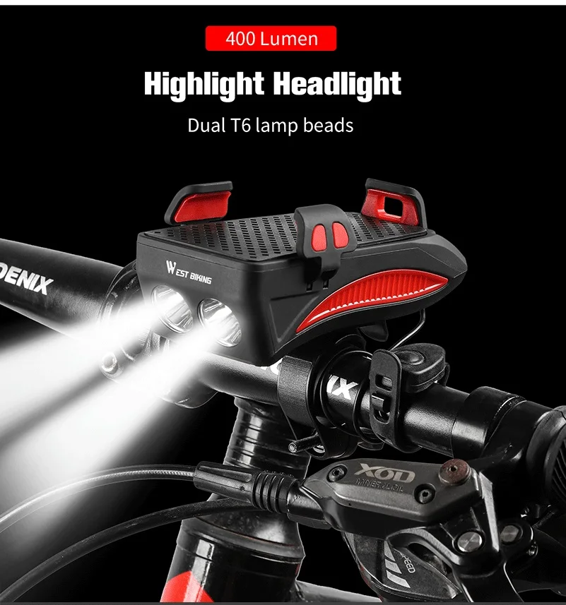 WEST BIKING светильник для велосипеда 2000 мАч4000 мАч аккумулятор внешний аккумулятор держатель для телефона 130 дБ динамик колокол 4 в 1 MTB велосипедные фары светильник s
