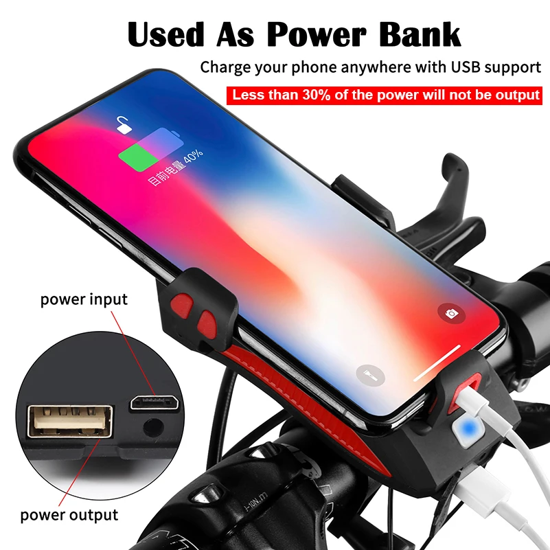 Держатель телефона + фонарик 400 люмен + внешний аккумулятор + звонок 130 дБ