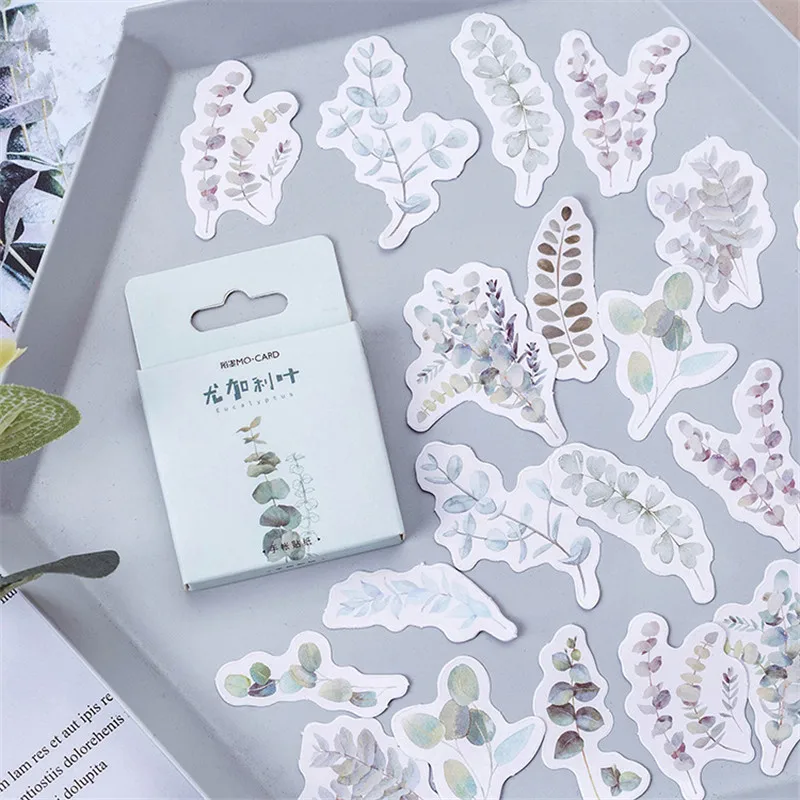 Миниатюрная бумажная наклейка с листьями эвкалипта, 45 шт.лот, украшение сделай сам, альбомный дневник, скрапбукинг, этикетка, наклейка, кавайные Канцтовары
