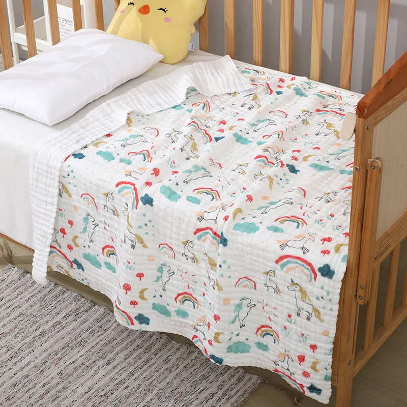 Хлопковое муслиновое одеяло с единорогом, 6 слоев, детское летнее одеяло, покрывало для коляски, банное полотенце, детское одеяло