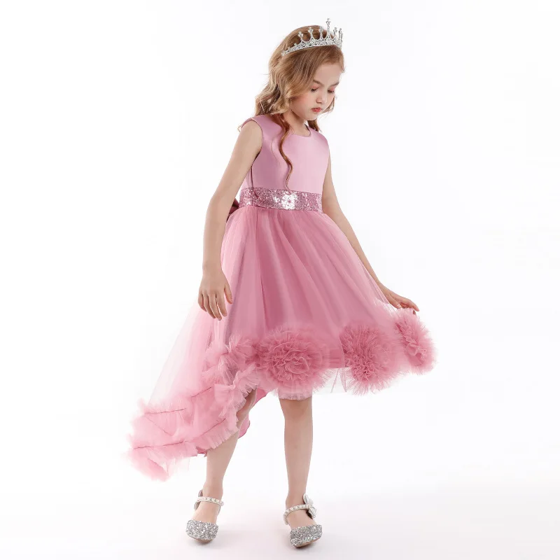 Популярное детское платье, летняя шифоновая юбка принцессы с цветами для девочек, однотонная вечерние ка для свадьбы, дня рождения, детская вечеринка