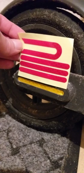 Как описано, стоит только наклеек на переднее колесо.