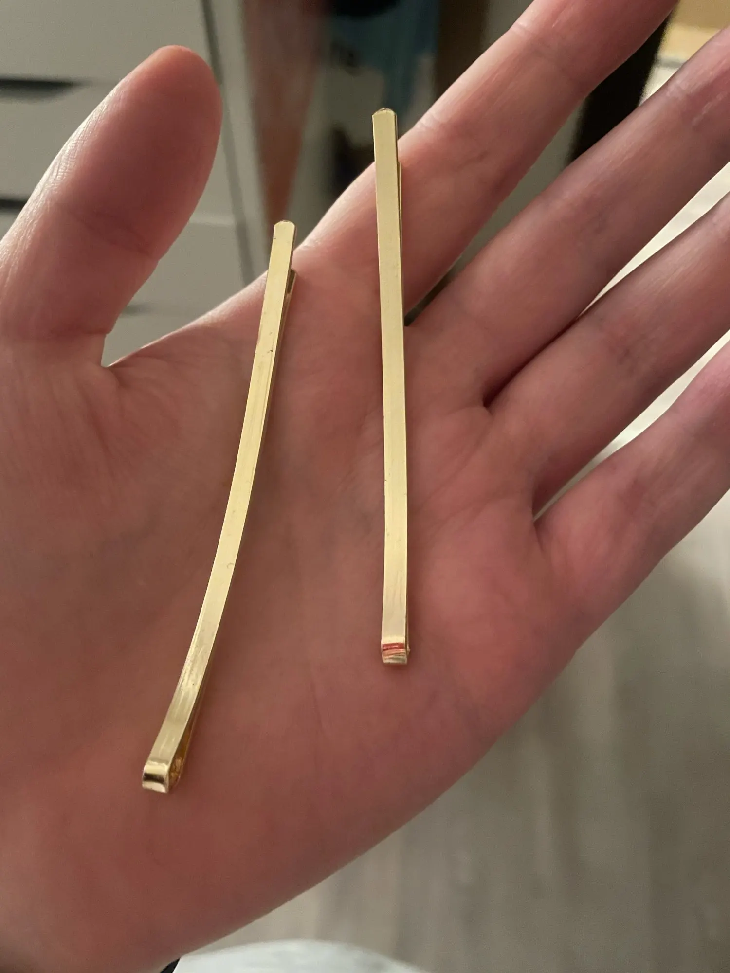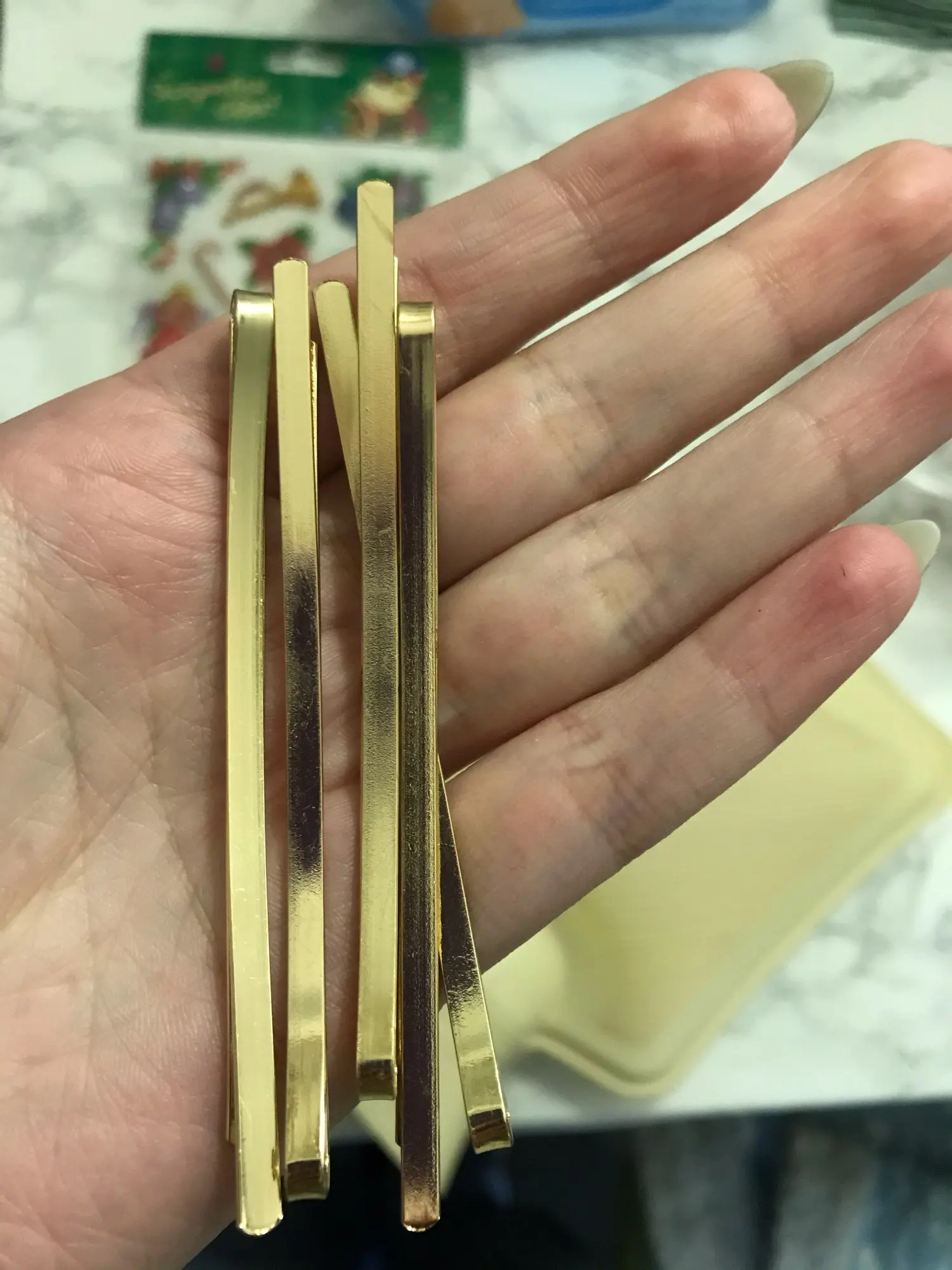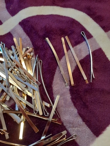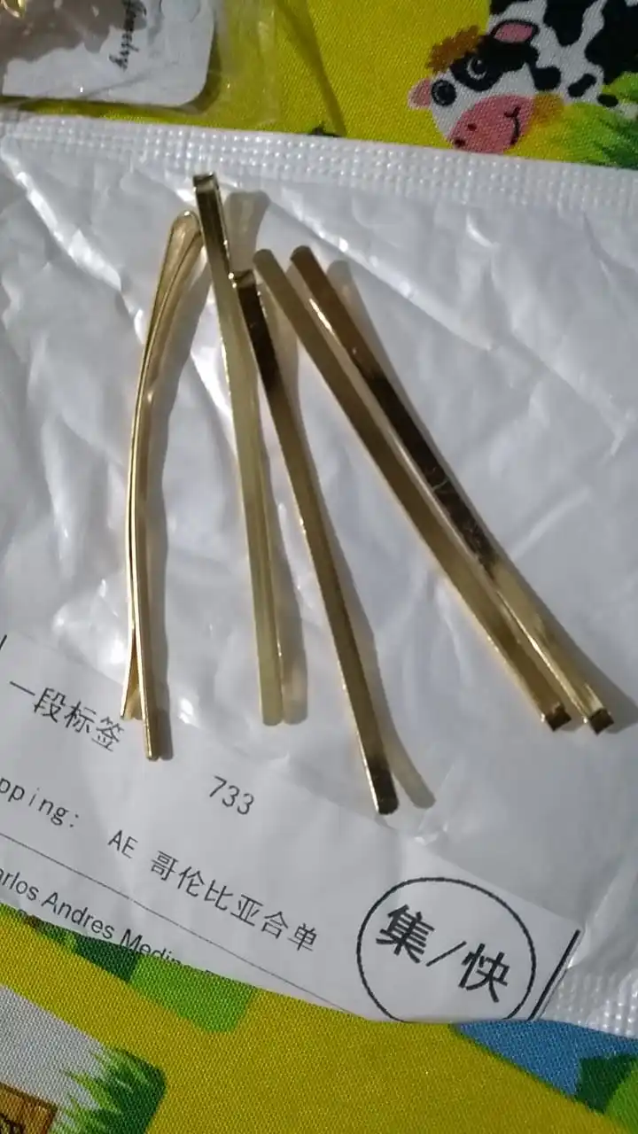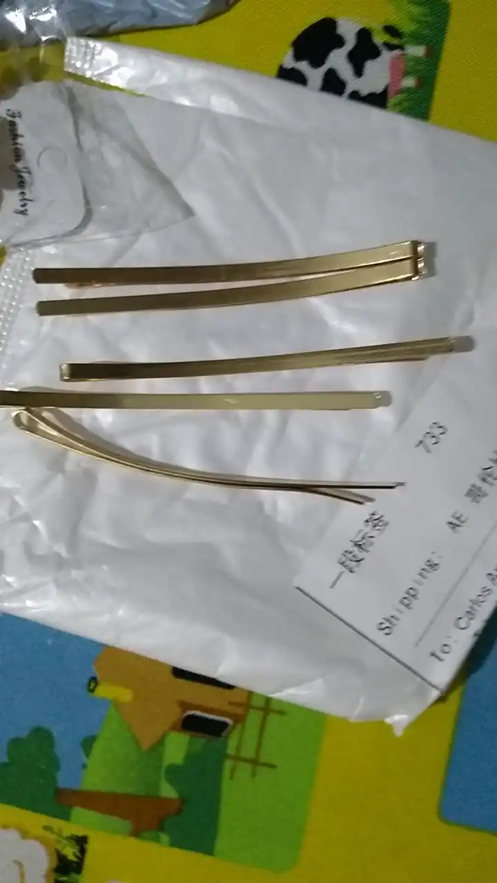 Пришли все 5 золотистого цвета, хотя я ожидала, что будут обоих цветов. Довольно длинные, в пол-головы, но зажим слабый, и царапают голову, надевать довольно дискомфортно