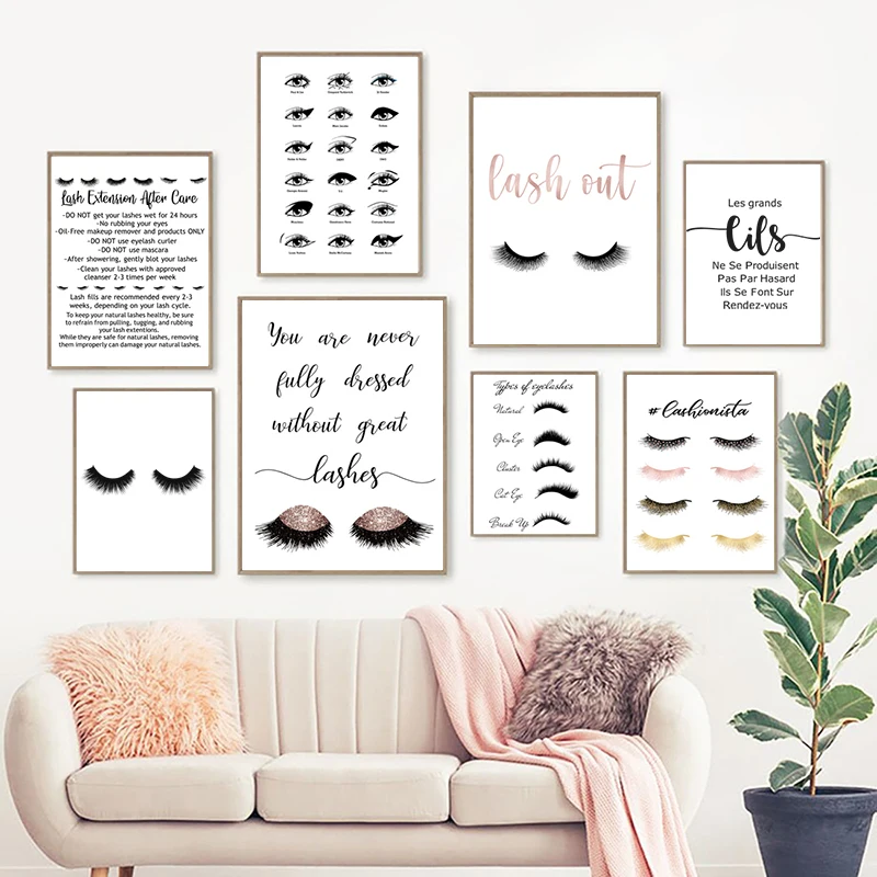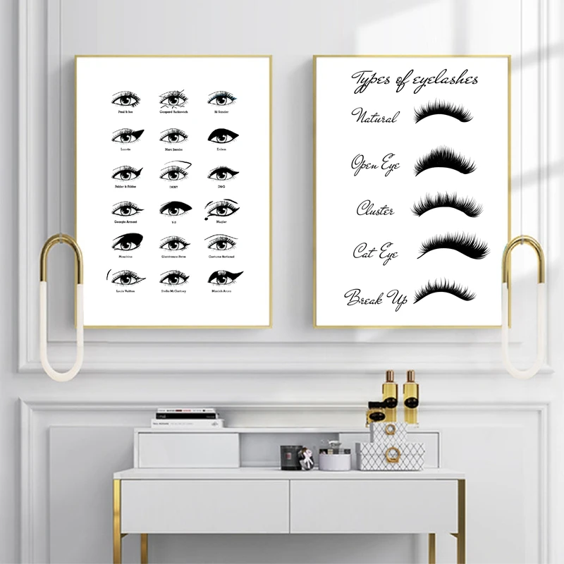 Типы ресниц, принты, плакат расширения ресниц для женщин, современная мода, макияж, настенное искусство, холст, живопись, картина для девичьего декора комнаты