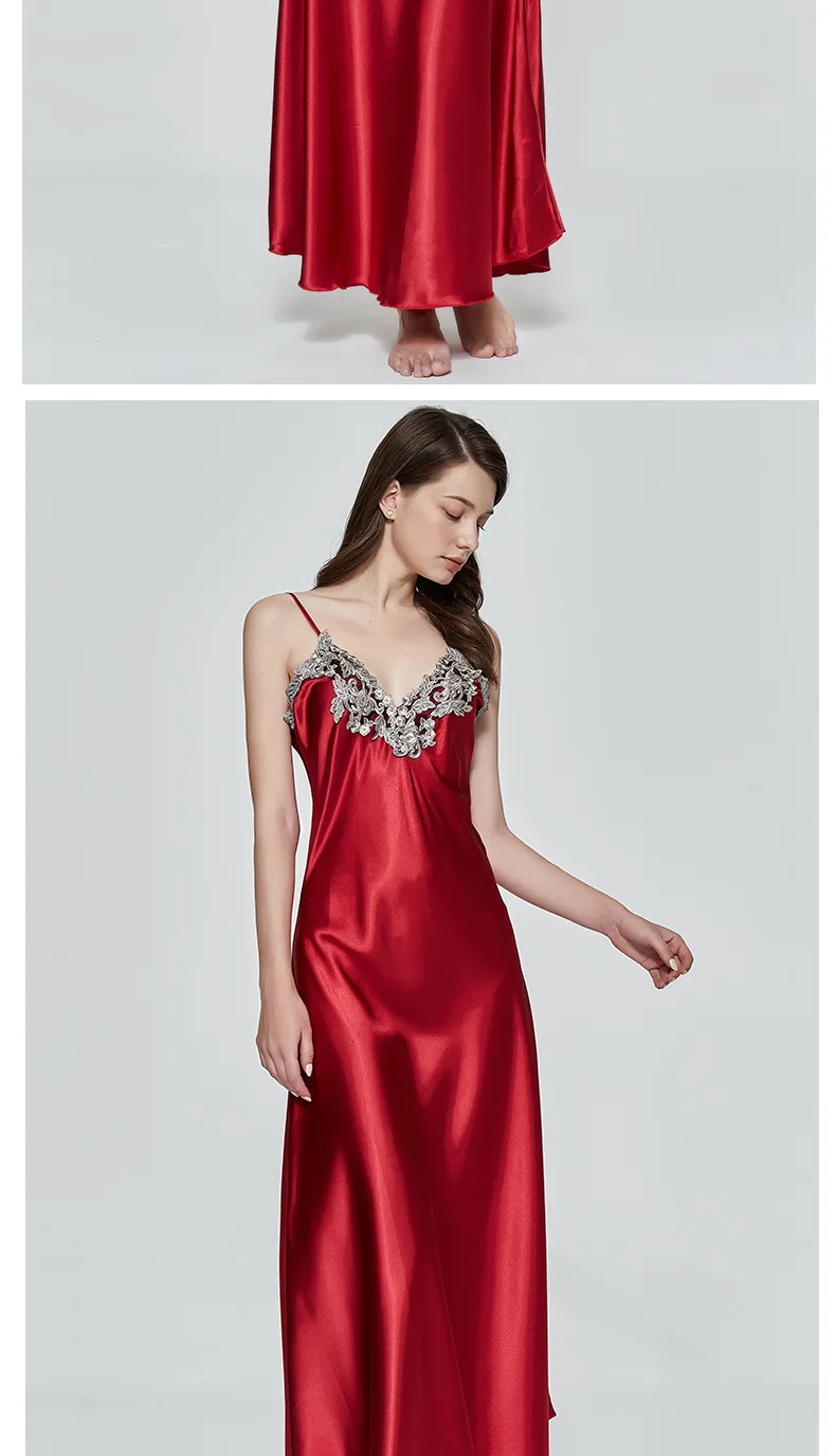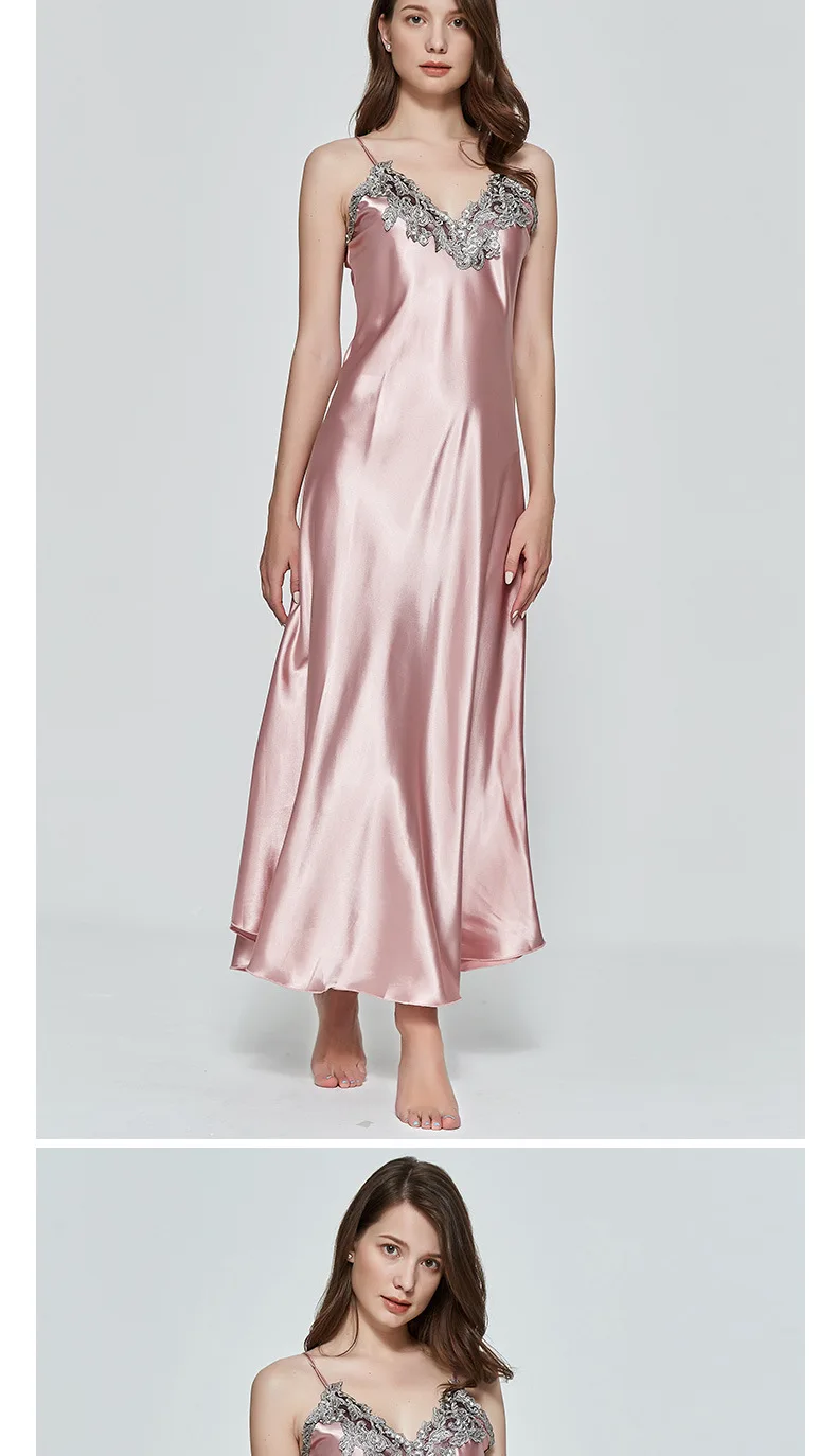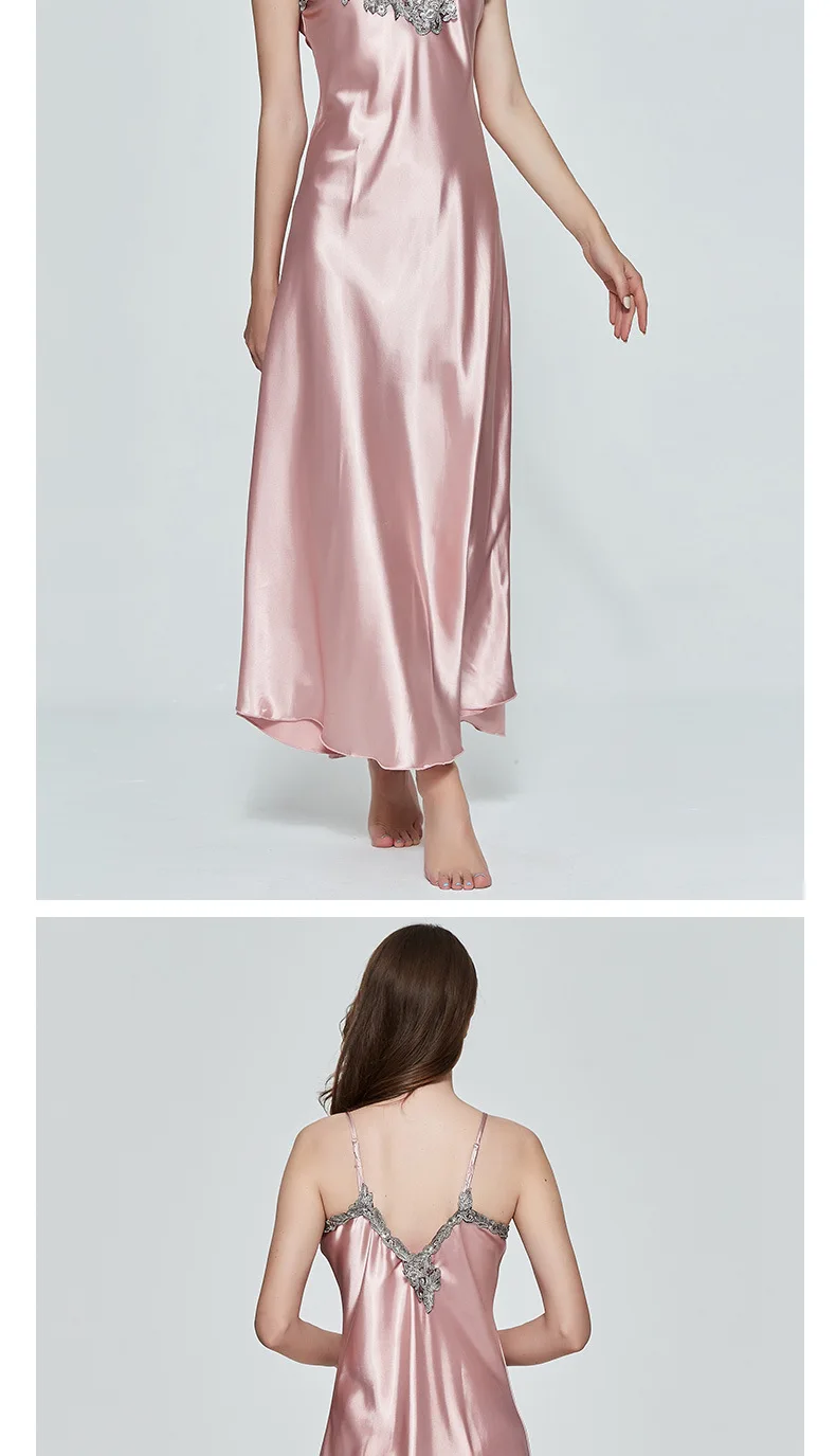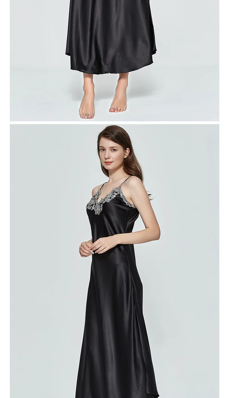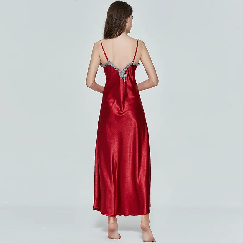 Шелковая длинная ночная рубашка для женщин, ночная сорочка на бретелях-спагетти, атласная одежда для сна, женское сексуальное кружевное платье с бахромой, ночная рубашка, домашняя одежда