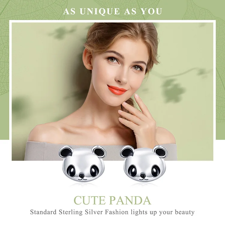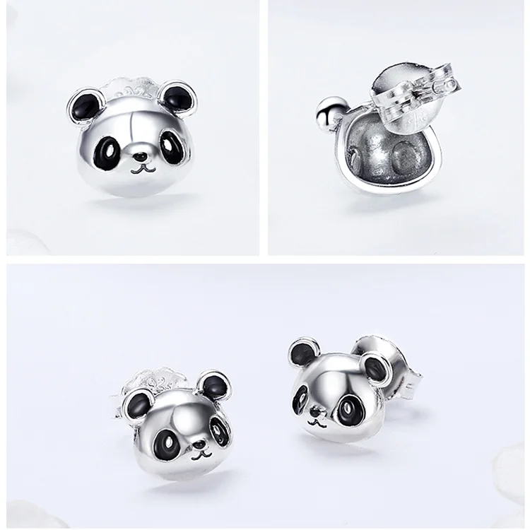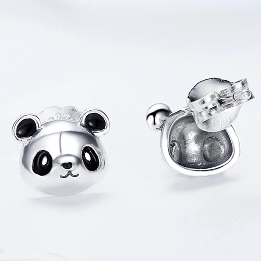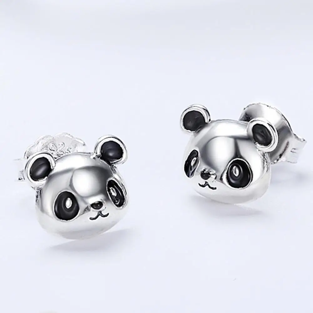 Женские серьги-гвоздики в виде головы панды, из серебра 925 пробы