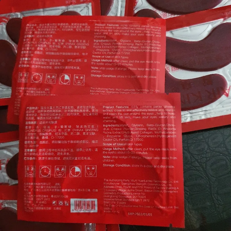 Маски-патчи под глаза с красным женьшенем, питательные, Коллагеновые, от темных кругов, увлажняющие, уход за кожей вокруг глаз, 5 шт.лот
