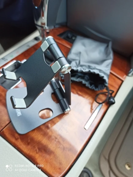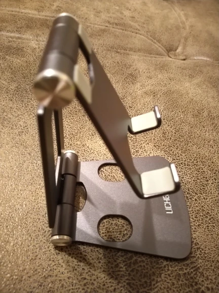 очень годный и качественный аксессуар. металл лёгкий, есть резиновые накладки на корпусе и на основании, чтобы не скользил телефон и доп защита от царапин. ничто нигде не люфтит, сгибы достаточно тугие, это плюс. доставка на север Томской области менее чем за 1 мес. продавца рекомендую.