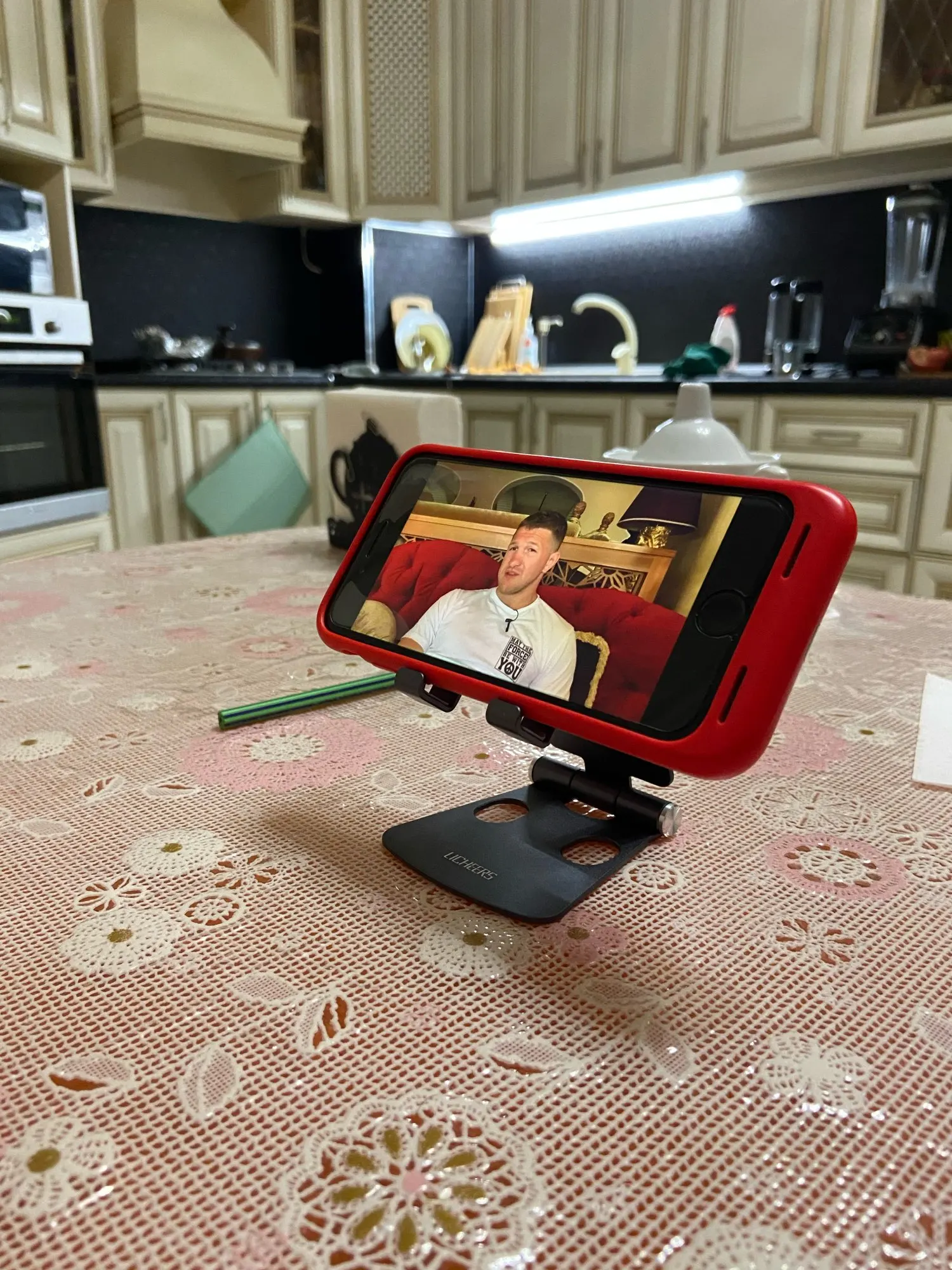 Подставка огонь!! Сделано качественно!! Смотреть очень удобно!! Единственное что, когда пишешь сообщения, телефон немного дрожит, потому что конструкция легкая!!