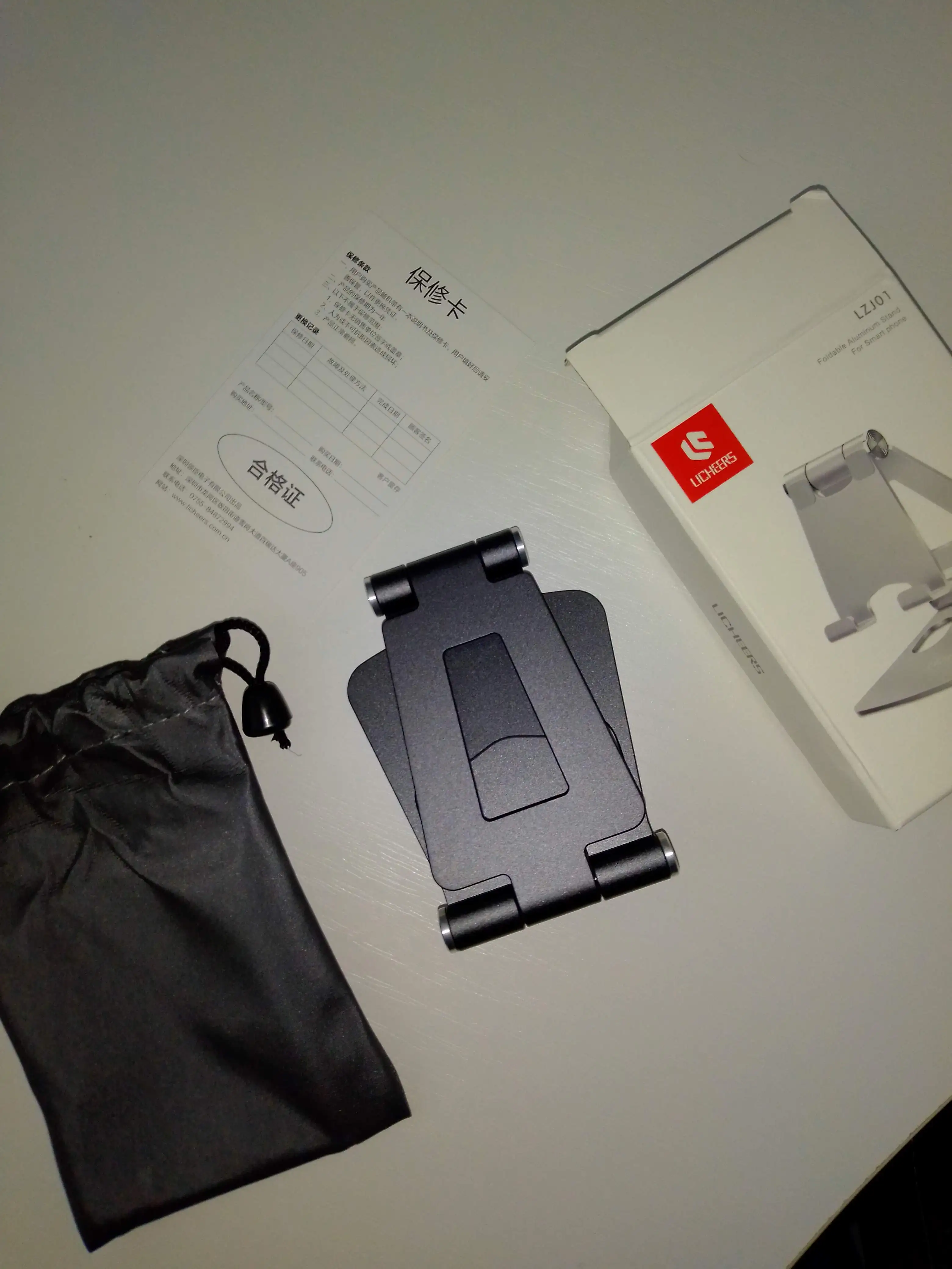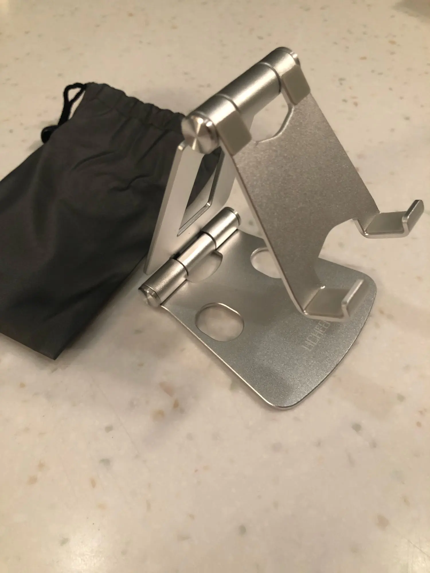 Качественная вещь. Сделанная из алюминия полностью. Стоит хорошо и на вид тоже!:) в комплекте идёт чехол для подставки