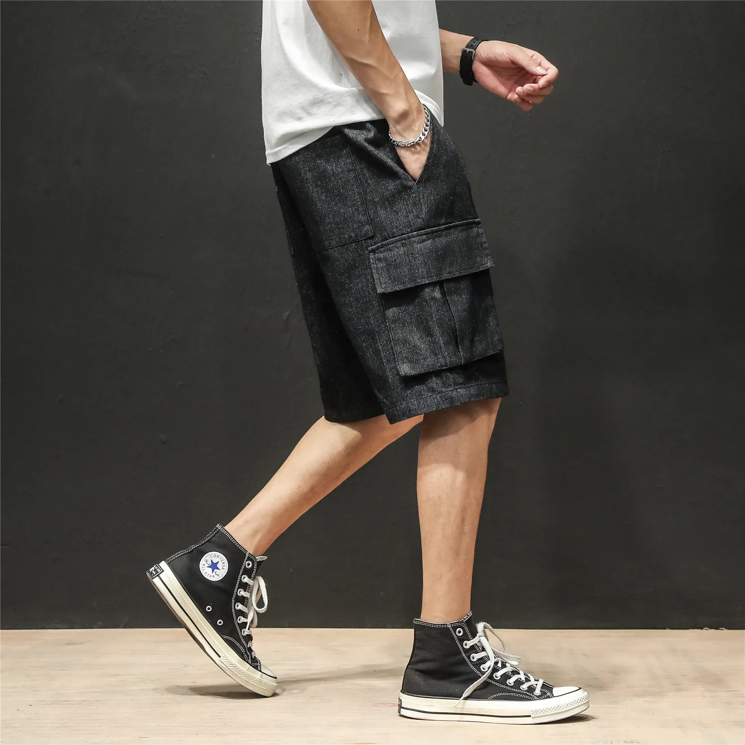 Мужские джинсовые шорты-бермуды, байкерские шорты, модная уличная одежда в стиле хип-хоп, Свободные повседневные синие джинсовые пляжные шорты, хлопок, на лето