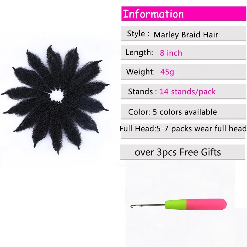 8 ''афро-Марли плетеные волосы, мягкие, кудрявые, плетеные, синтетические, для наращивания, высокотемпературное волокно для женщин