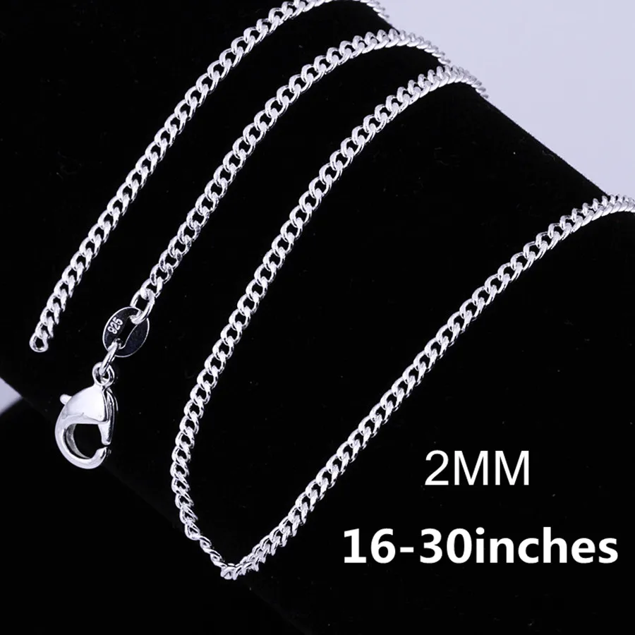 Цепочка из стерлингового серебра 925 пробы для мужчин и женщин, ожерелье длиной 2 мм, изящное Ювелирное Украшение, 16-30 дюймов