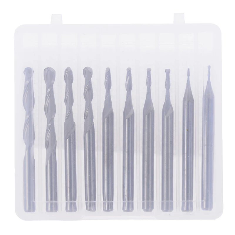 Хит! Набор концевых фрез, комплект из 10 твердосплавных шариковых наконечников 1 мм-3,175 мм с 2 канавками 18 дюйма, для работ по дереву