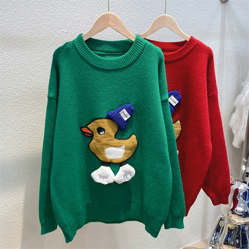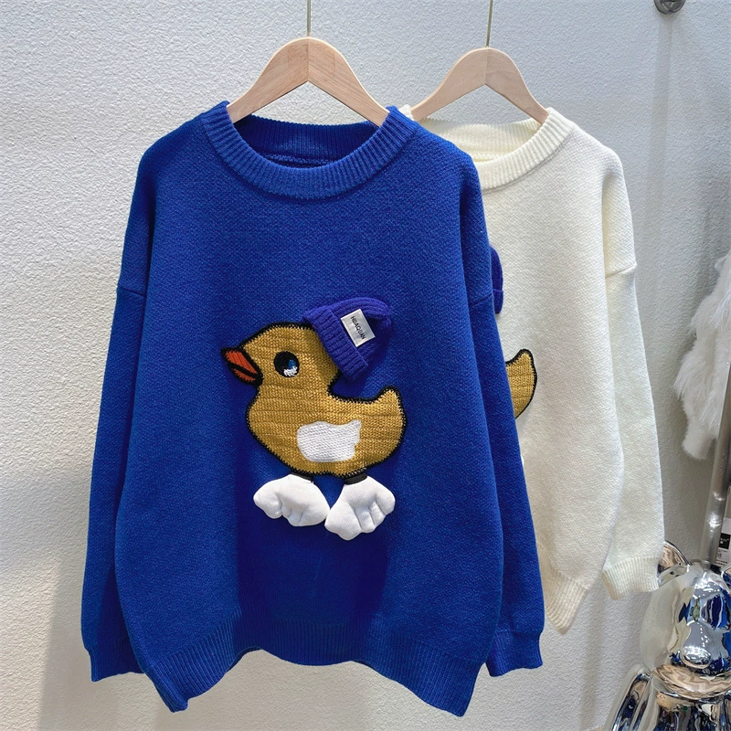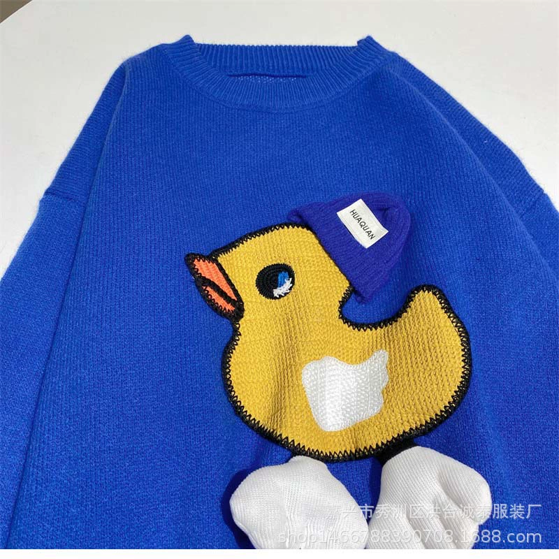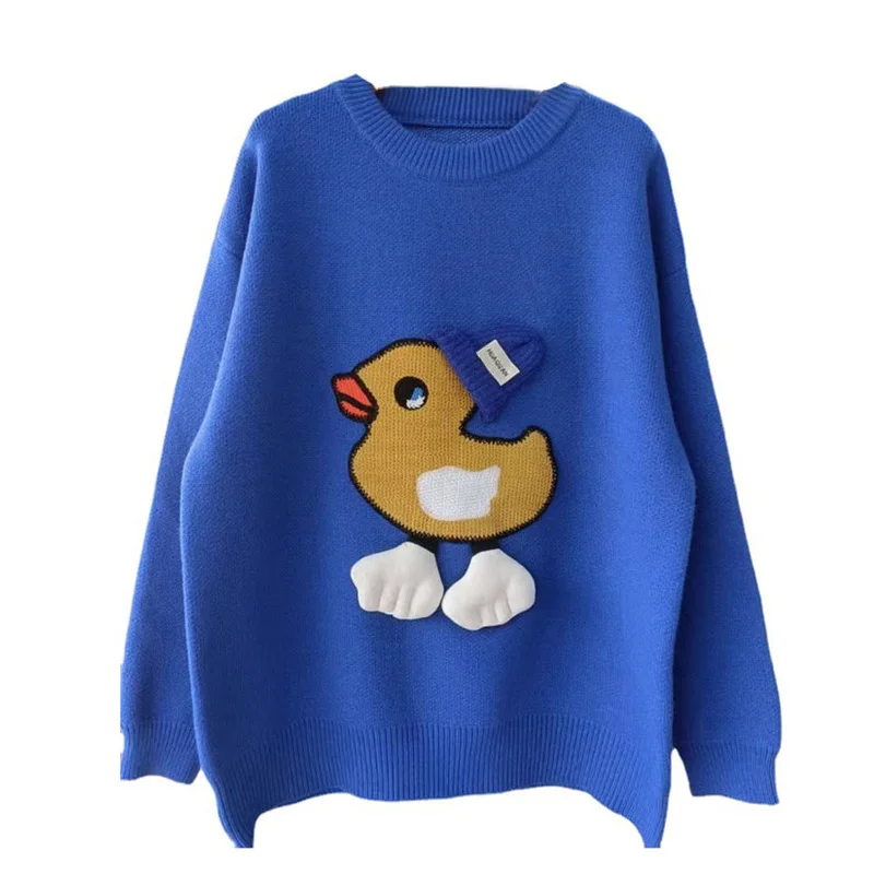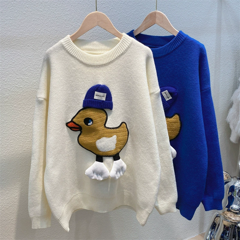 Женские вязаные свитера с героями мультфильмов; Сезон весна-осень; Свитера с рисунком утки; Пуловер; Уличная мода; Свободный Повседневный джемпер; Новинка 2022 года