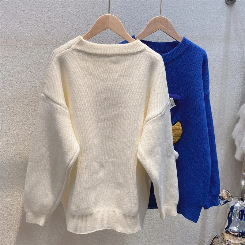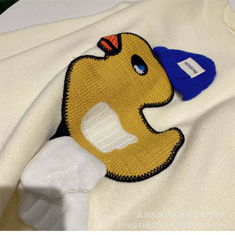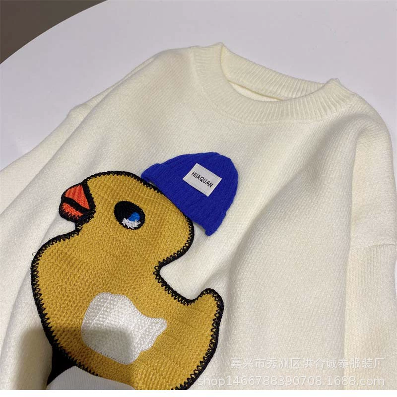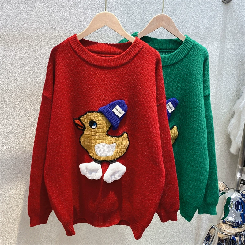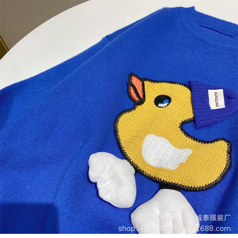 Женские вязаные свитера с героями мультфильмов; Сезон весна-осень; Свитера с рисунком утки; Пуловер; Уличная мода; Свободный Повседневный джемпер; Новинка 2022 года
