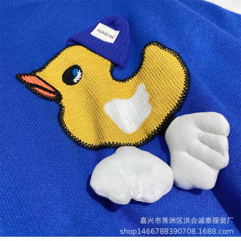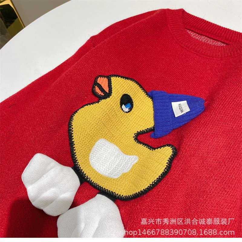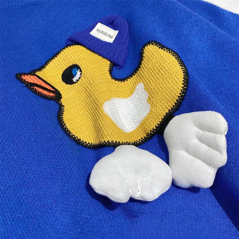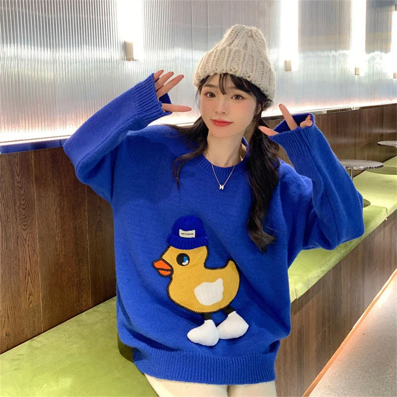 Женский вязаный свитер с мультяшным рисунком, весенне-осенний пуловер свободного покроя с узором в виде утки, Модный повседневный джемпер, новинка 2022