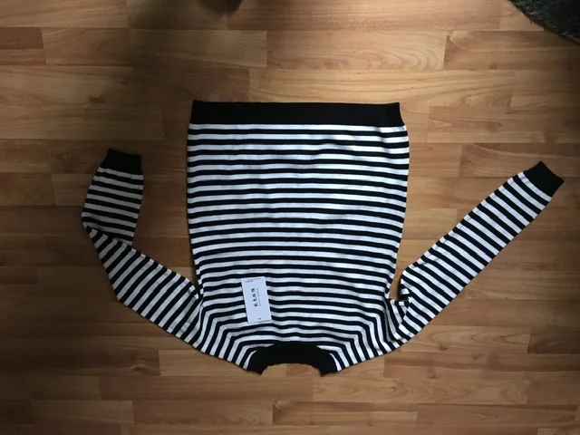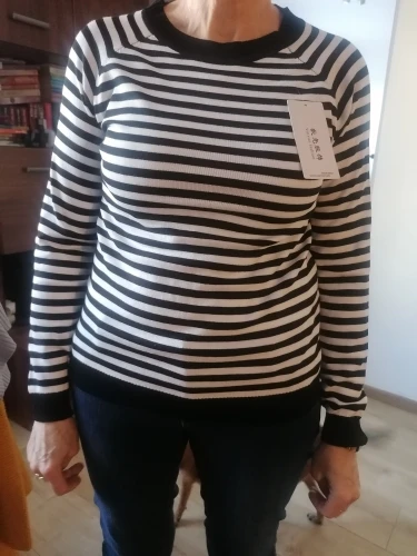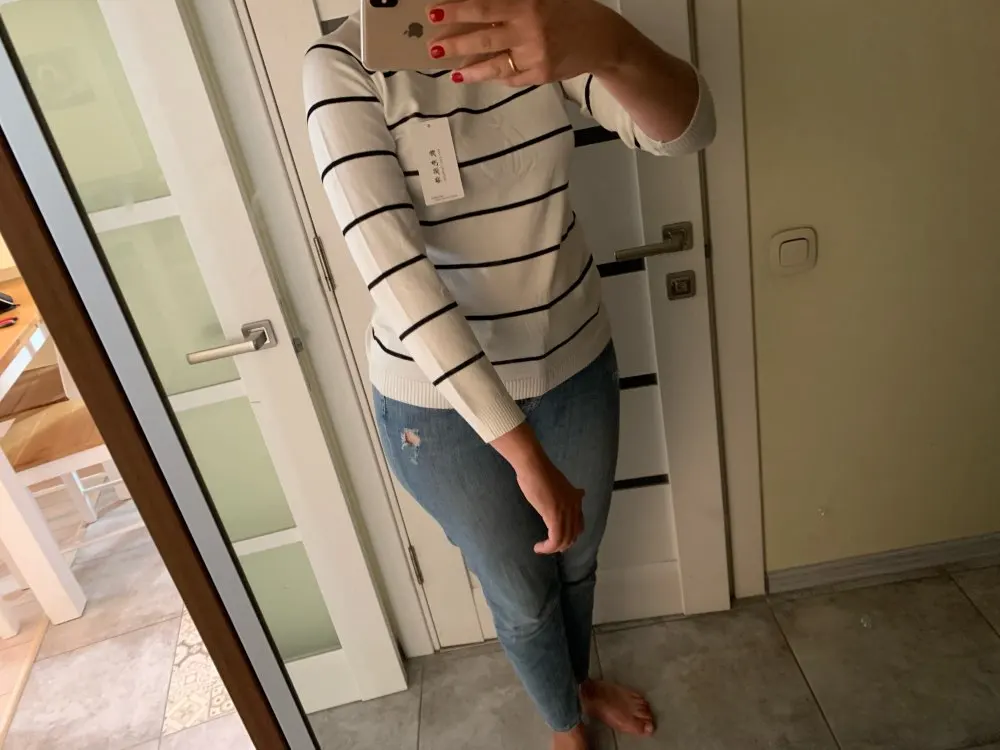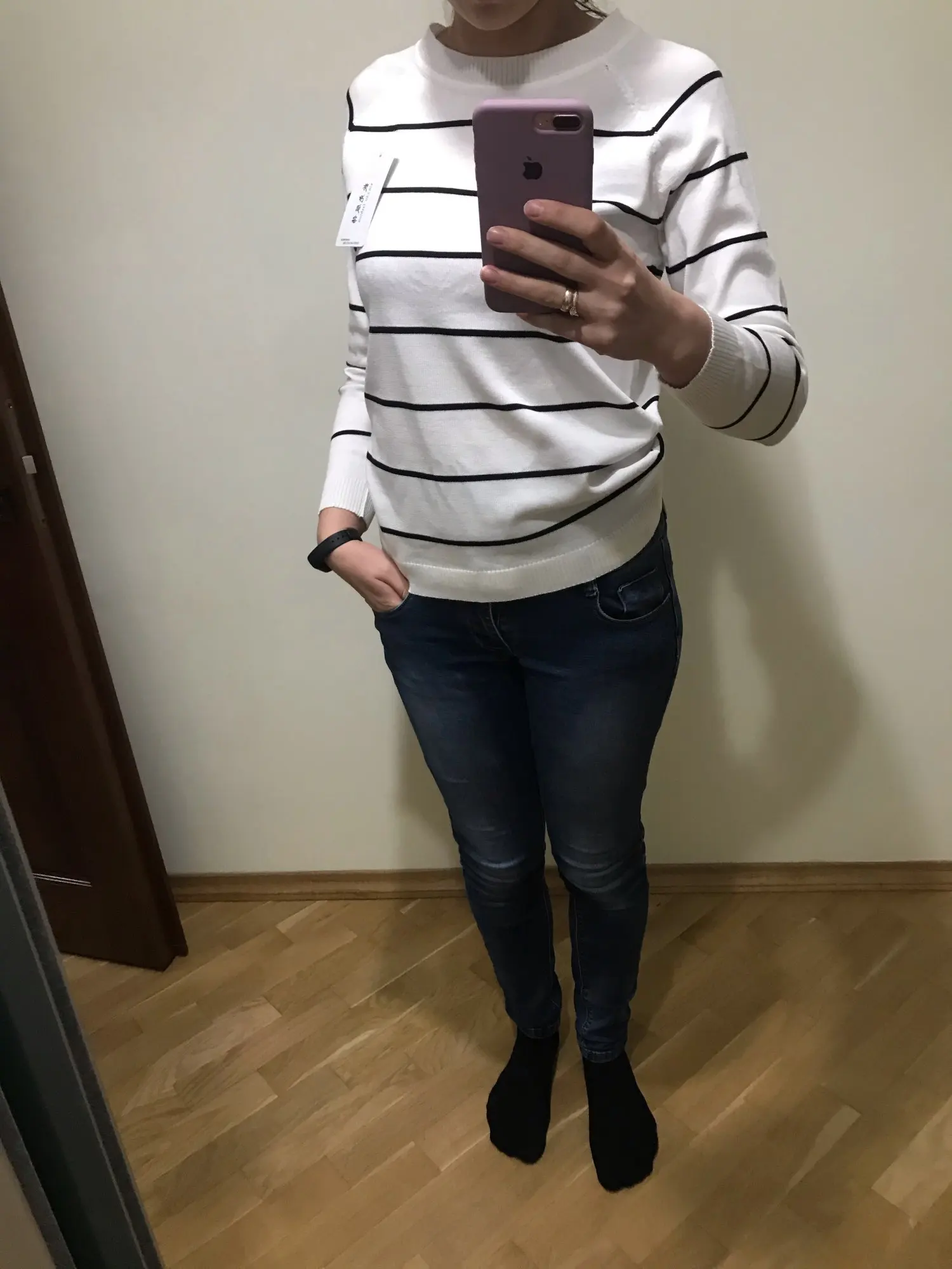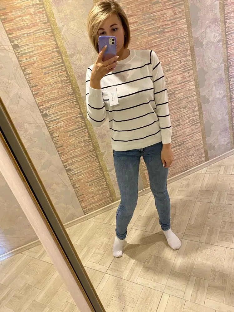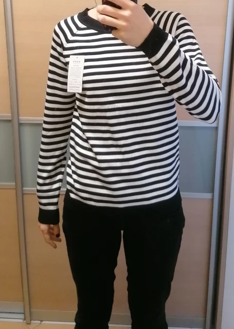 Доставка чуть больше месяца, джемпер хороший, без запаха, нитки не торчат, полоски совпадают, что очень порадовало