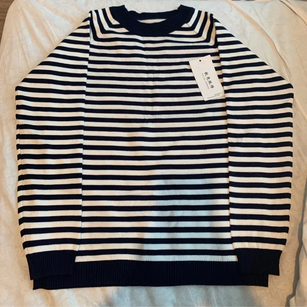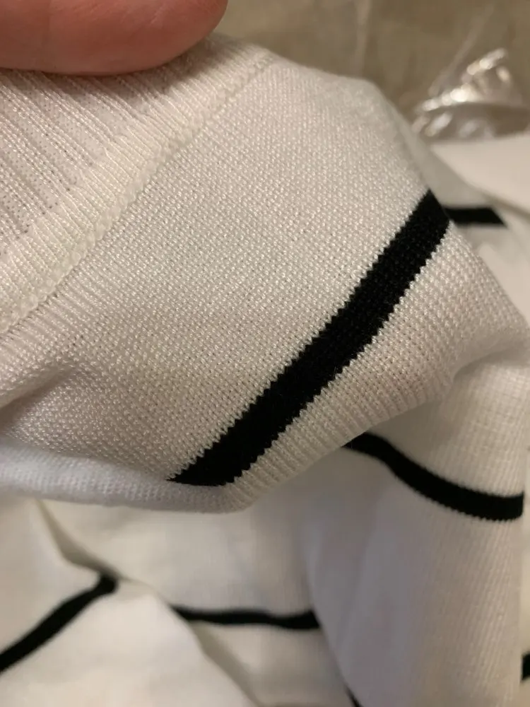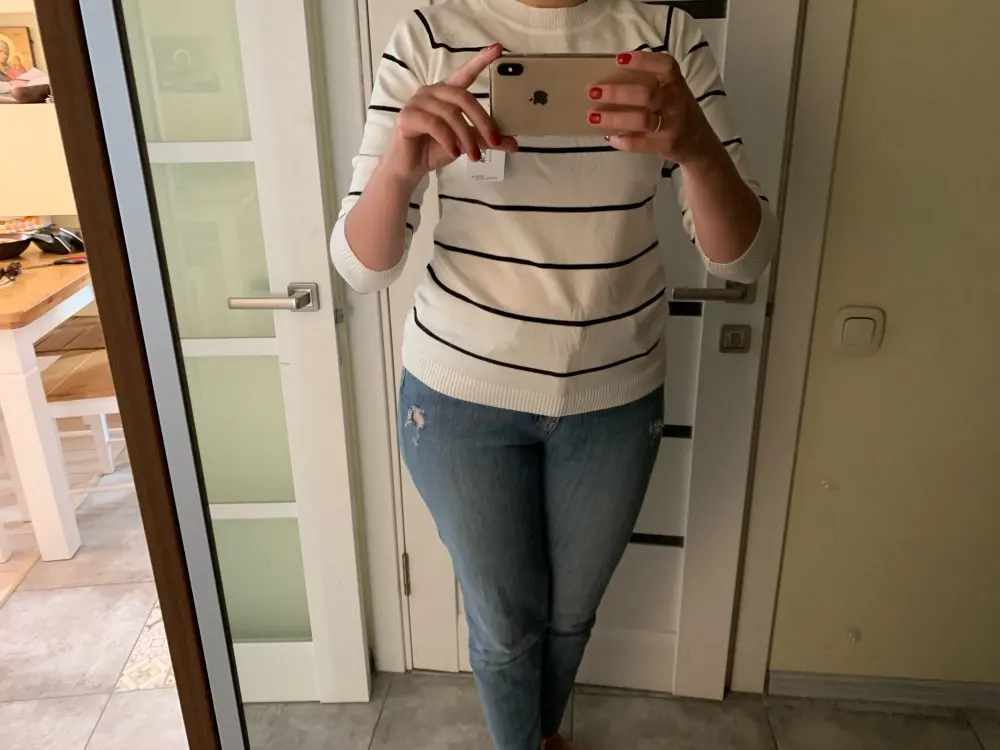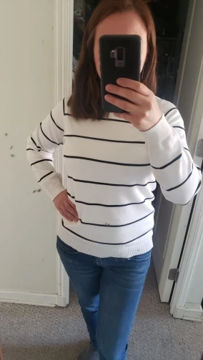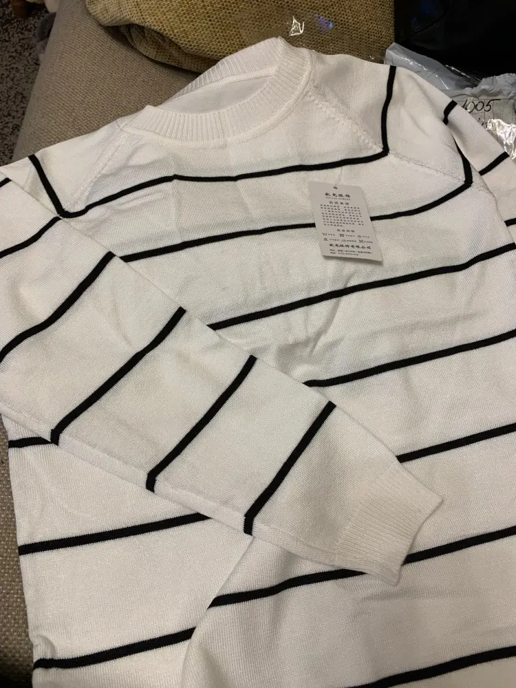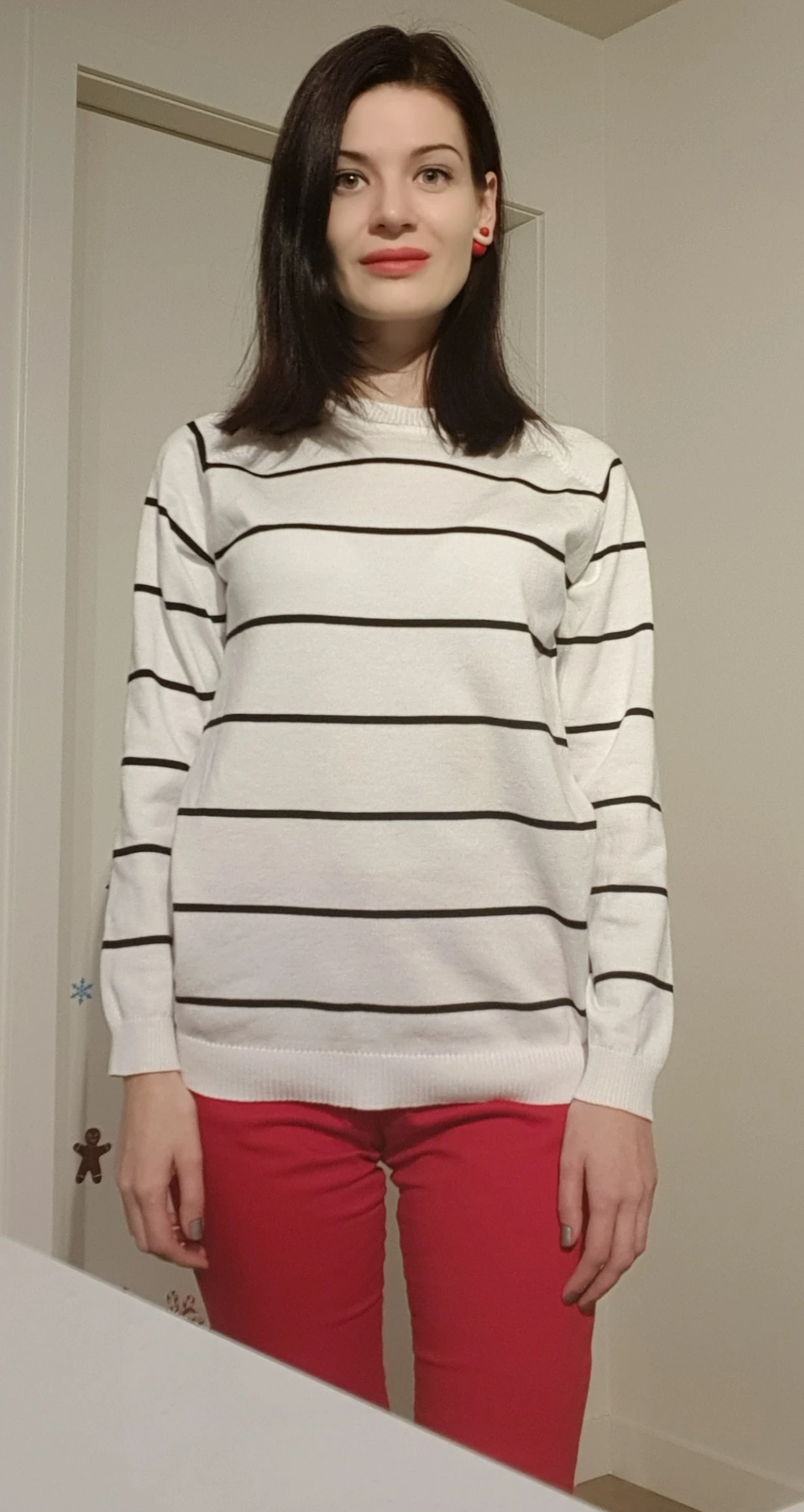 Доставка чуть больше месяца, джемпер хороший, без запаха, нитки не торчат, полоски совпадают, что очень порадовало