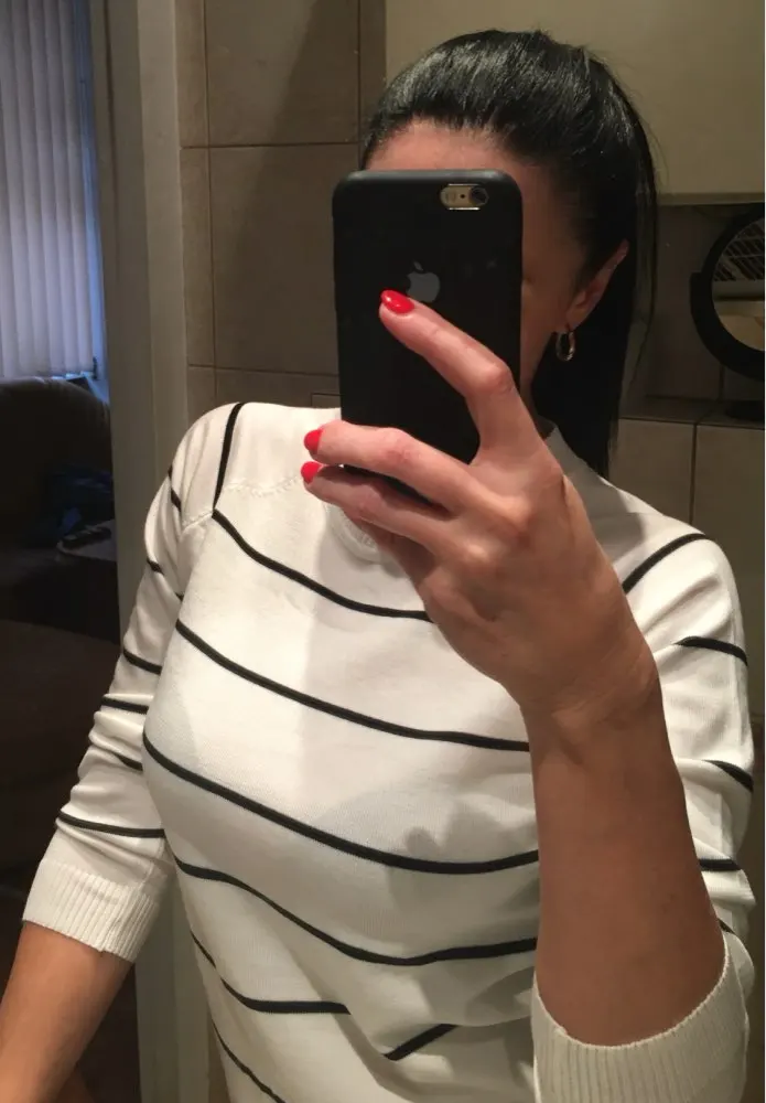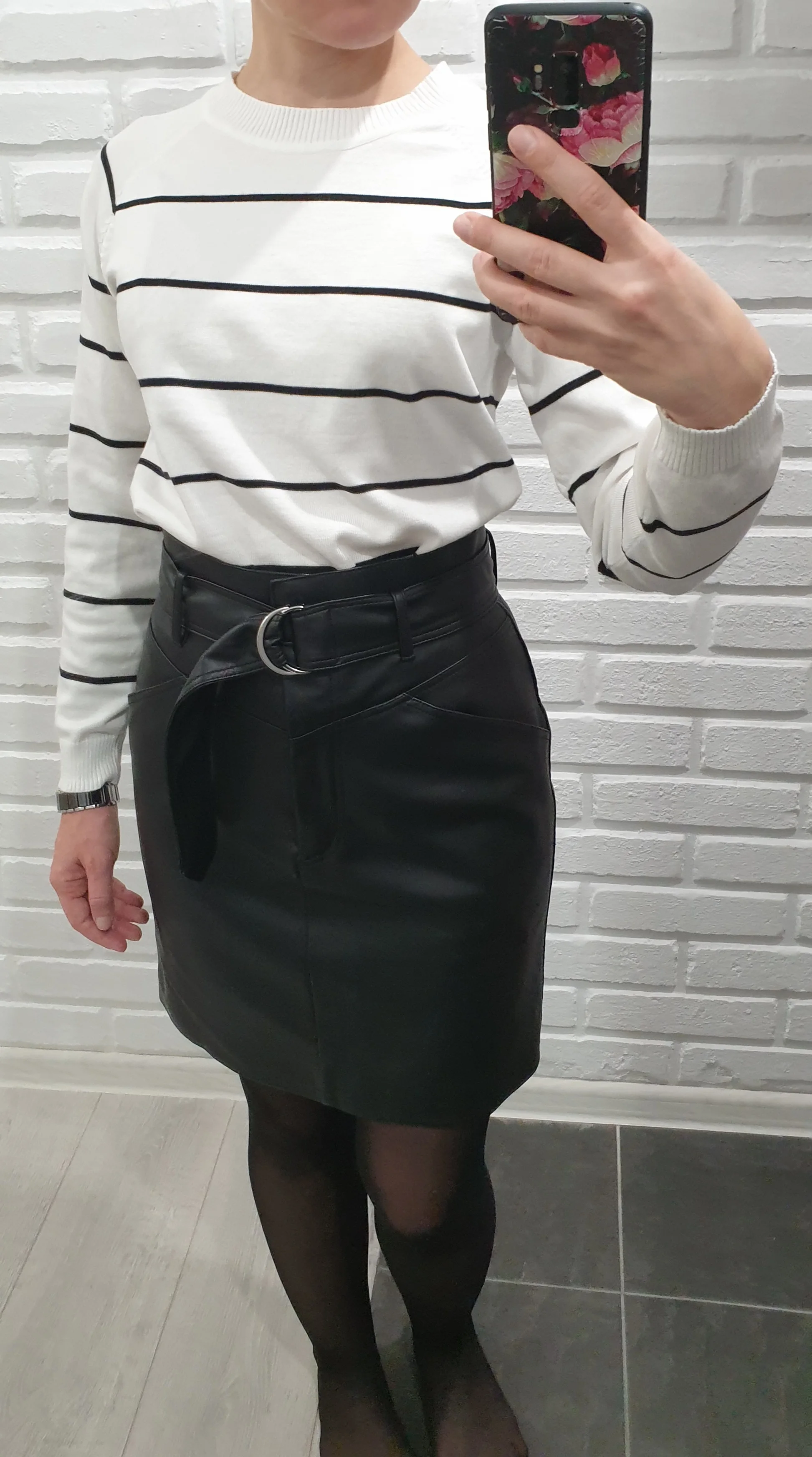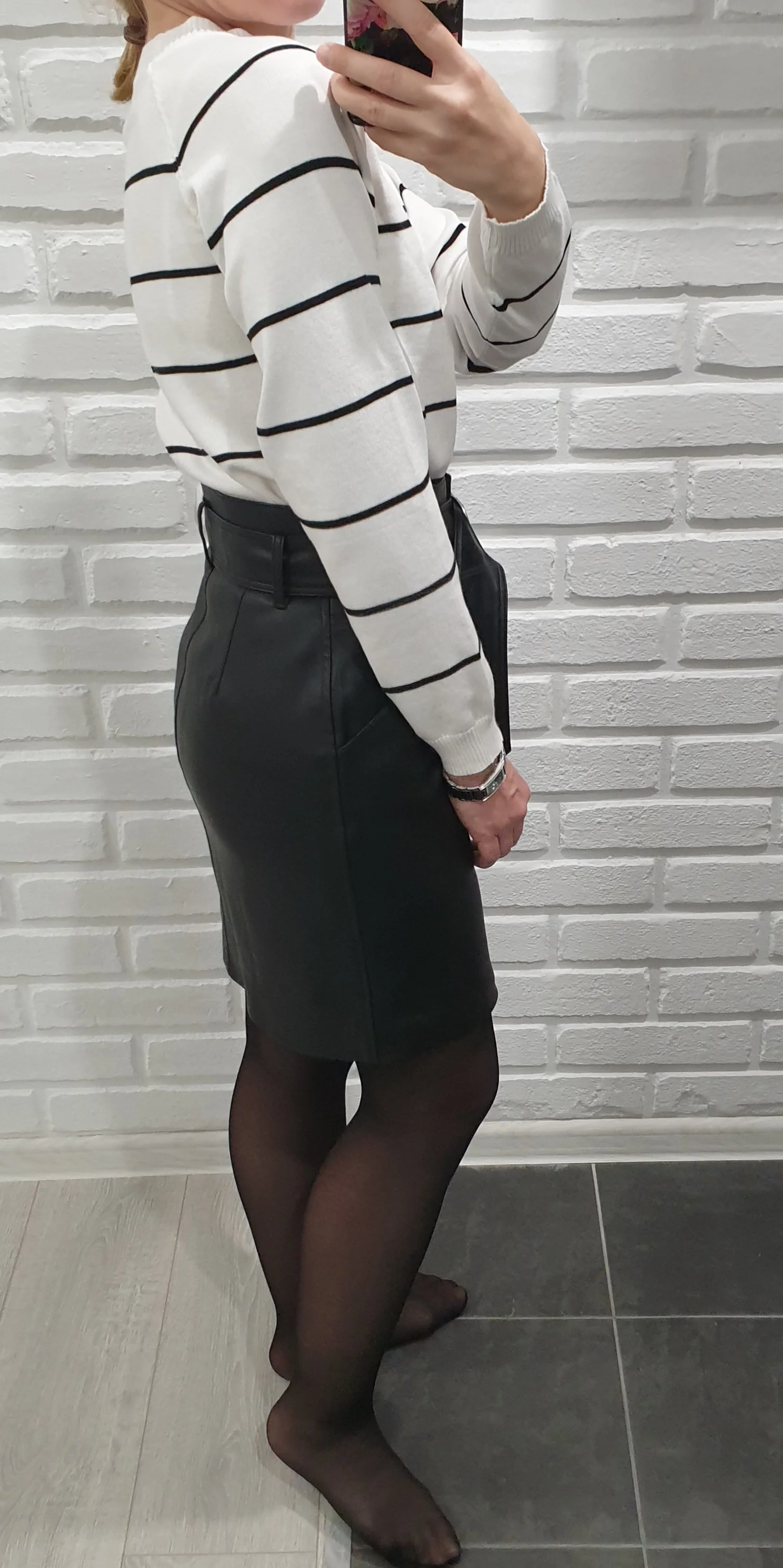 Мои параметры 88/74/104 - коыта пости в облипку. Это минус. Я люблю, да и в моде сейчас, посвободнее. Но с брюками высокой посадки с поясом или с юбкой - в общем под заправку подойдёт. Материал приятный, качественный. Но внутри как видите есть косяки - нитки, не оч качественный прошив, не. бирок. Заказала 11.11, приехало в нижний Новгород 1 декабря.
