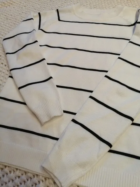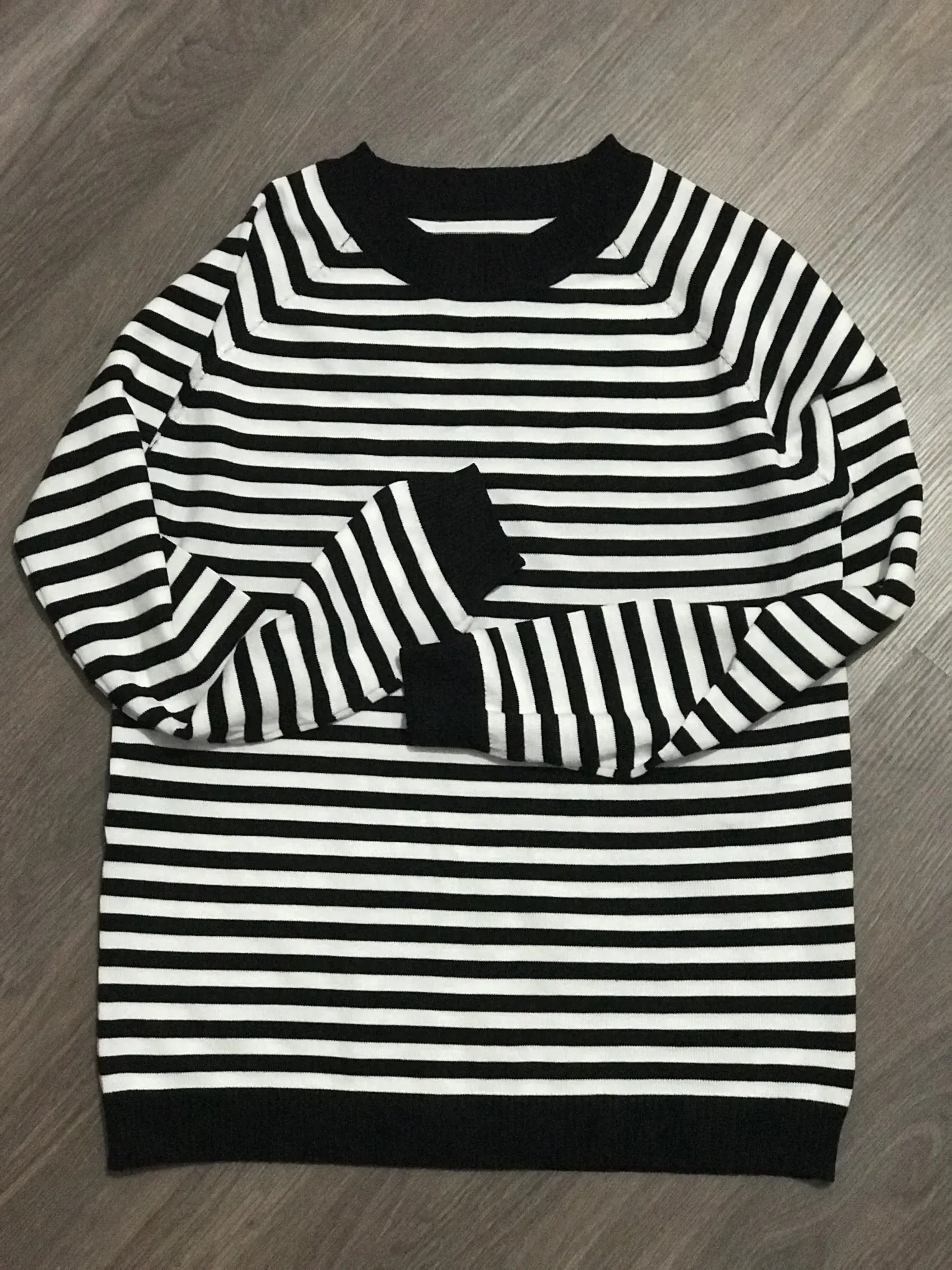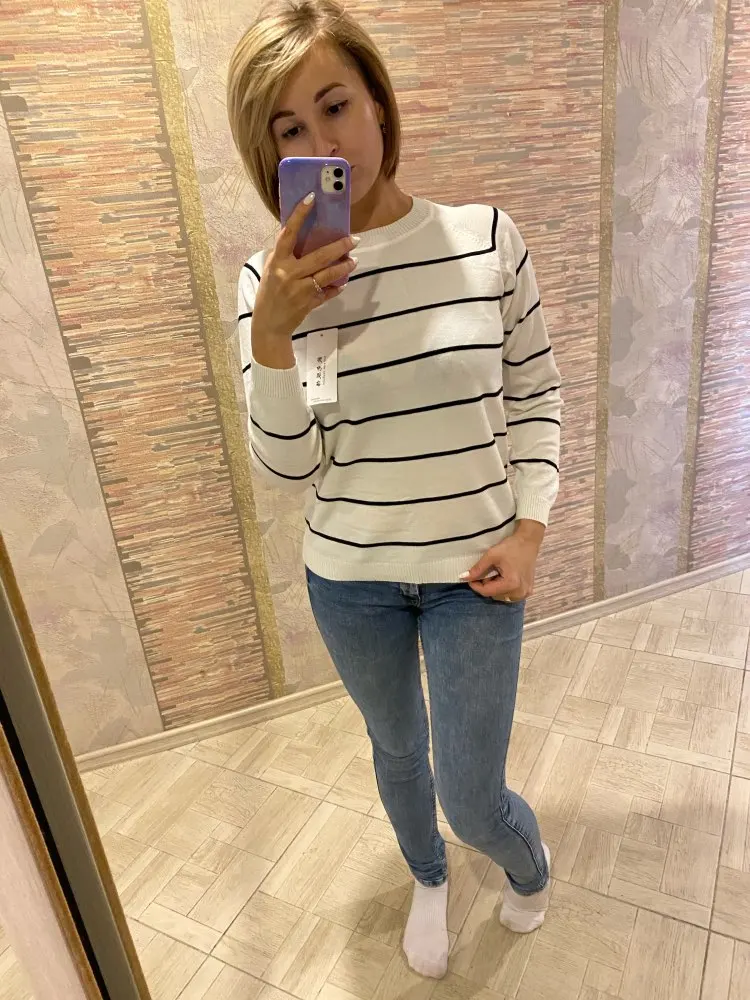 свитер Женский джемпер пуловер в полоску с длинным рукавом, белый корейский пуловер женский круглым вырезом, Осень-зима 2021
