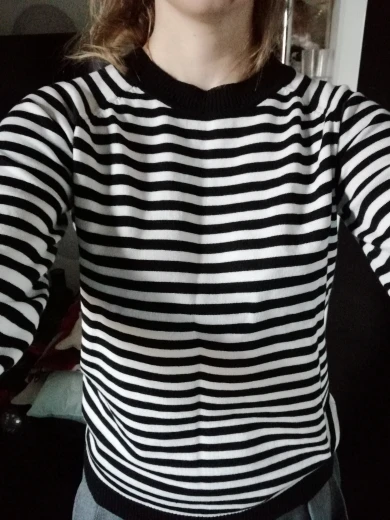 Свитер соответствует описанию. Ткань очень приятная к телу. Отличное качество. Это один размер, но для 52 кг/164 см я хотел бы сделать его на один или два размера меньше. Мне нравится зауженная посадка, и этот свитер слишком большой, особенно на талии. Доставка 1 месяц. Я доволен.