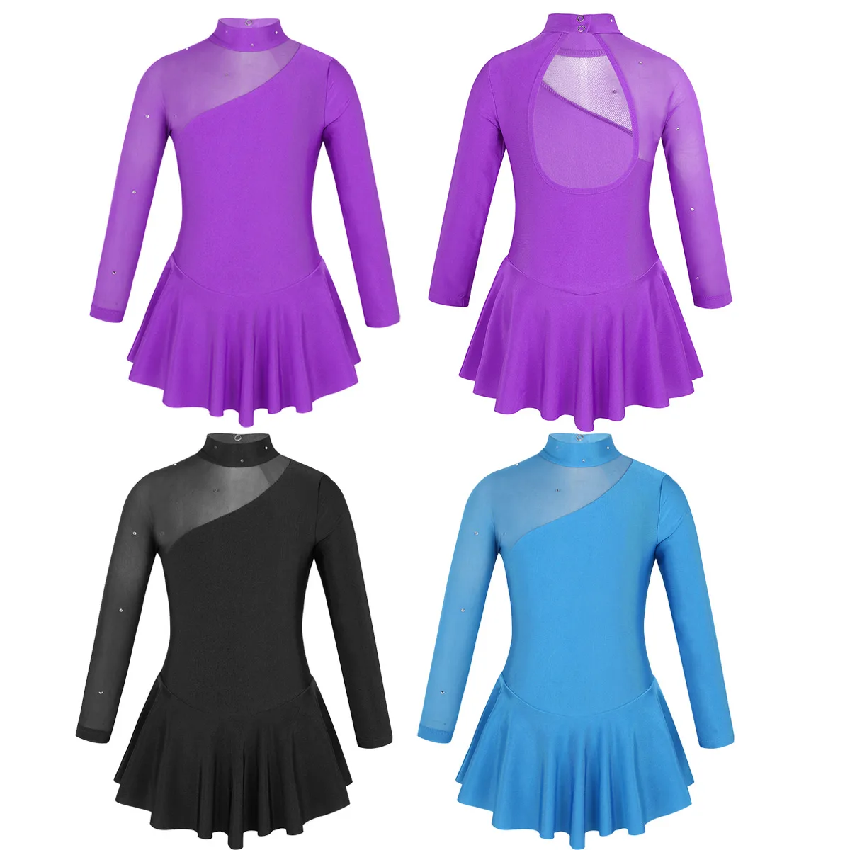 Особенности: Платье для катания на коньках изготовлено из полиэстера и тюля, ручная стирка. Таблица размеров означает возраст для девочек, но только для общего руководства. С длинными рукавами; С прозрачным фатиновым рукавом; С одной стороны. Ложная горловина с застежкой на пуговицы. Вырезы на спине. 1 слойная эластичная юбка из лайкры прикрепляется к талии. Дизайн с сверкающие стразы «кроше» для того, чтобы повысить уровень доверия и зрелищ. Подходит для фигурного катания, катания на льду, катания на роликах, сцены и т. д.
