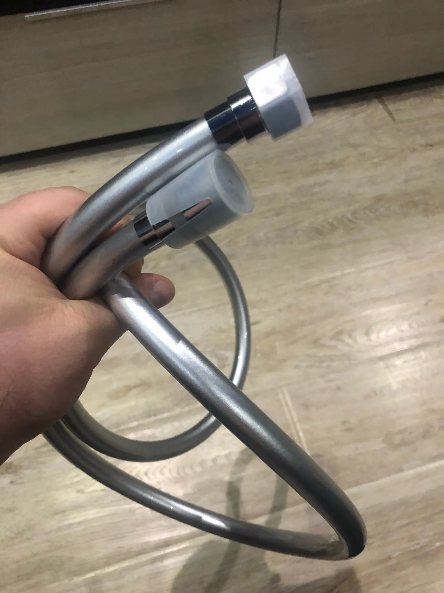 Хороший шланг. Качественные крепления из какого-то сплава металлов, не пластик. В наличии прокладки и заглушки, выглядит качественно, а время покажет. Под горячей водой становится достаточно мягким, не дубовый. Заказал 22 января 2021 года за 714 рублей 2 метра, с подвижной головкой. Дошло за 19 дней до пятерочки ХМАО, закинули в общий пакет к смесителю и лейке из другого магазина Алика. Гайка смесителя фиксируется твердо, зато гайка лейки свободно вращается, что удобно. Мой рост 180см, 2м шланга с небольшим запасом (немного провисает под смесителем). Брал с расчетом дотянуться для помывки унитаза, у меня совмещенный санузел. Дороговато, по сравнению с другими шлангами (хотя на самом деле это я нищеброд), но хотелось попробовать полностью полимерный без гофры. Первые впечатления положительные. Будут негативные впечатления при пользовании – дополню отзыв.