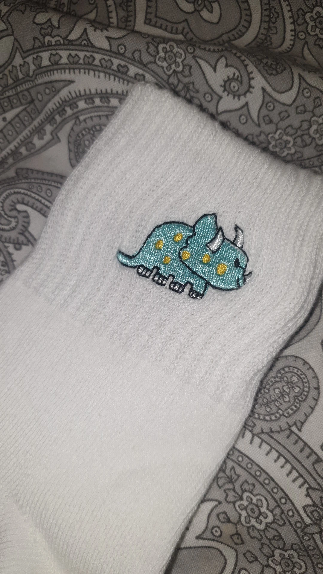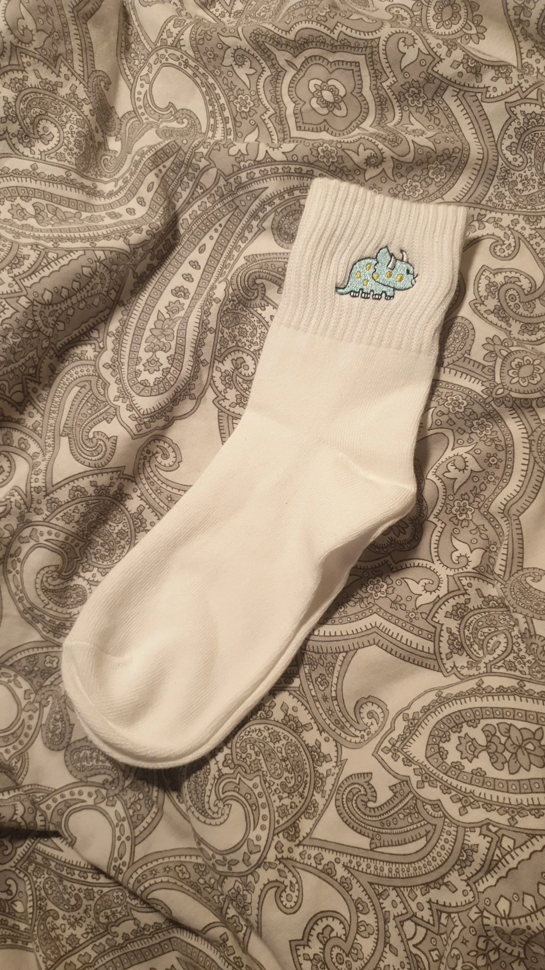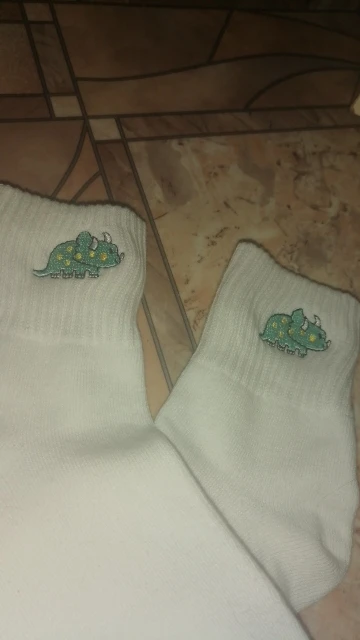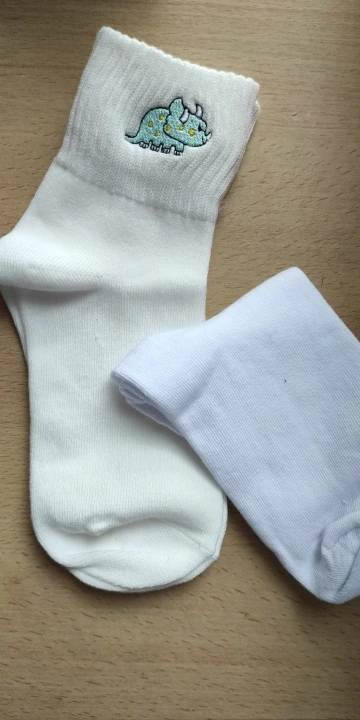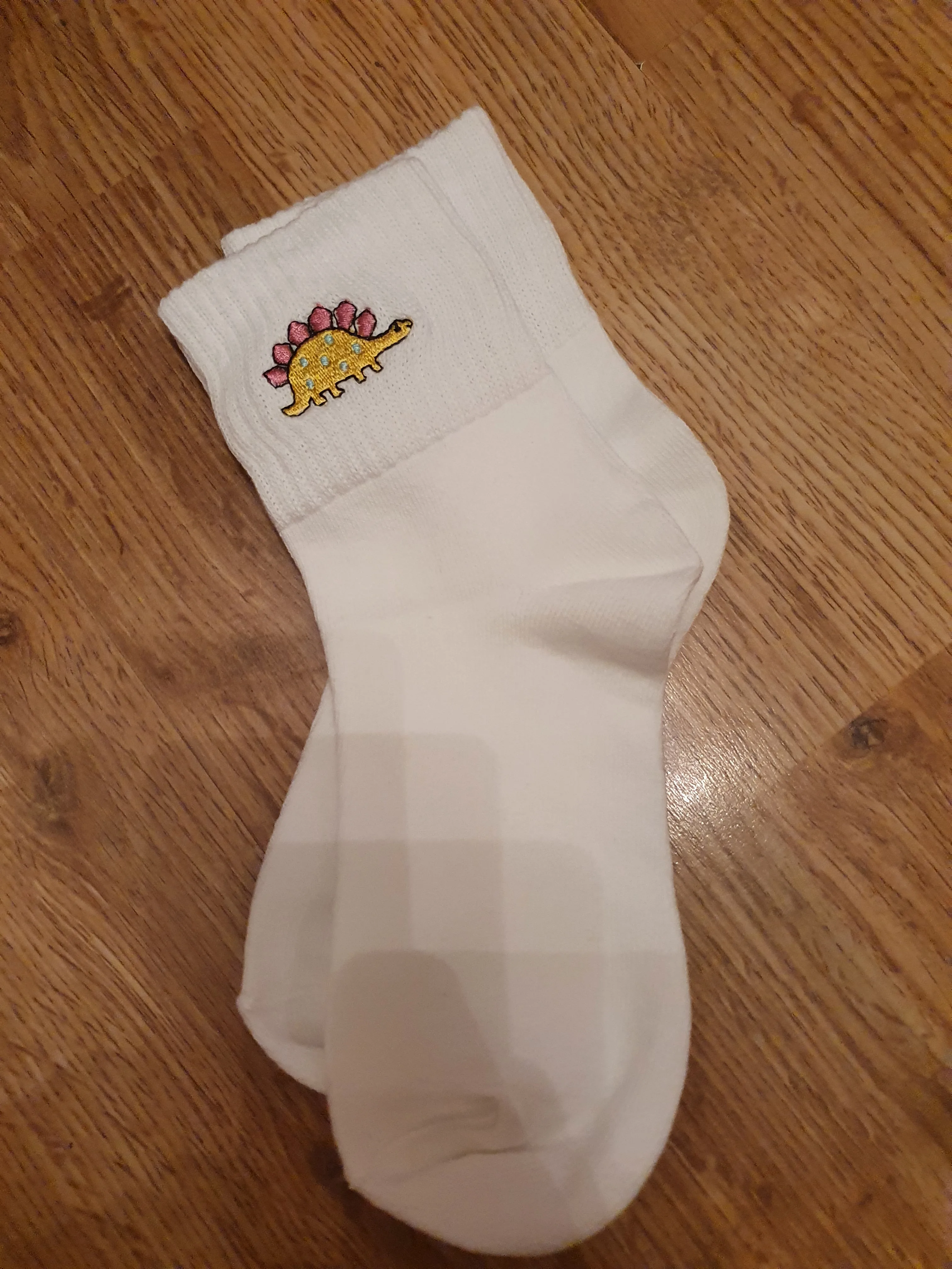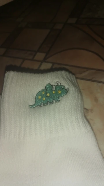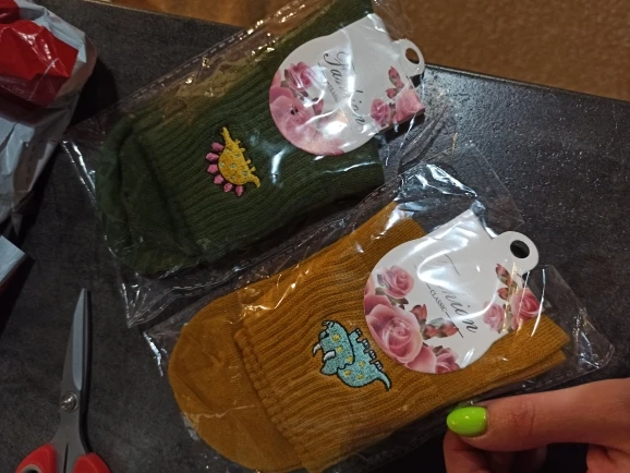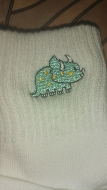 Прекрасные носочки, безумно приятные и кипелтно-белые ,качественно вышиты динозаврики- в общем все нравится,буду заказывать ещё