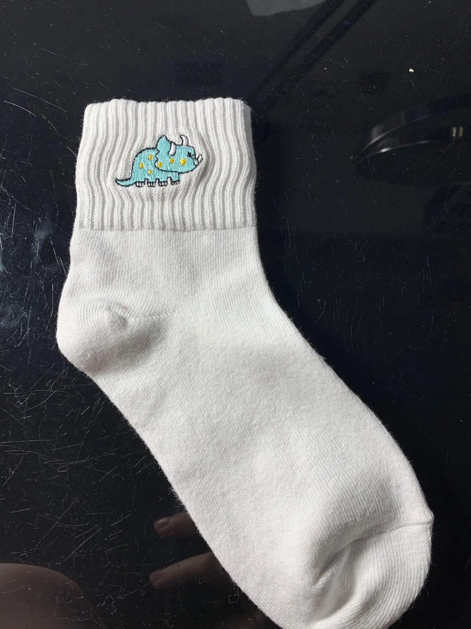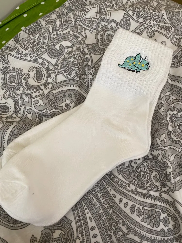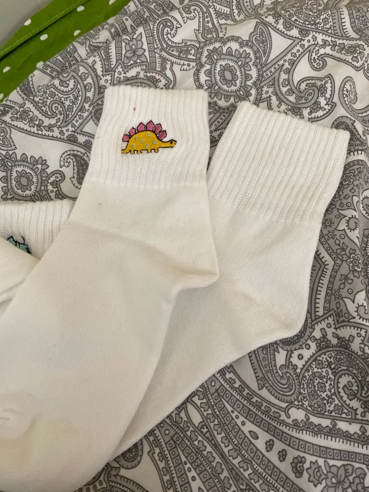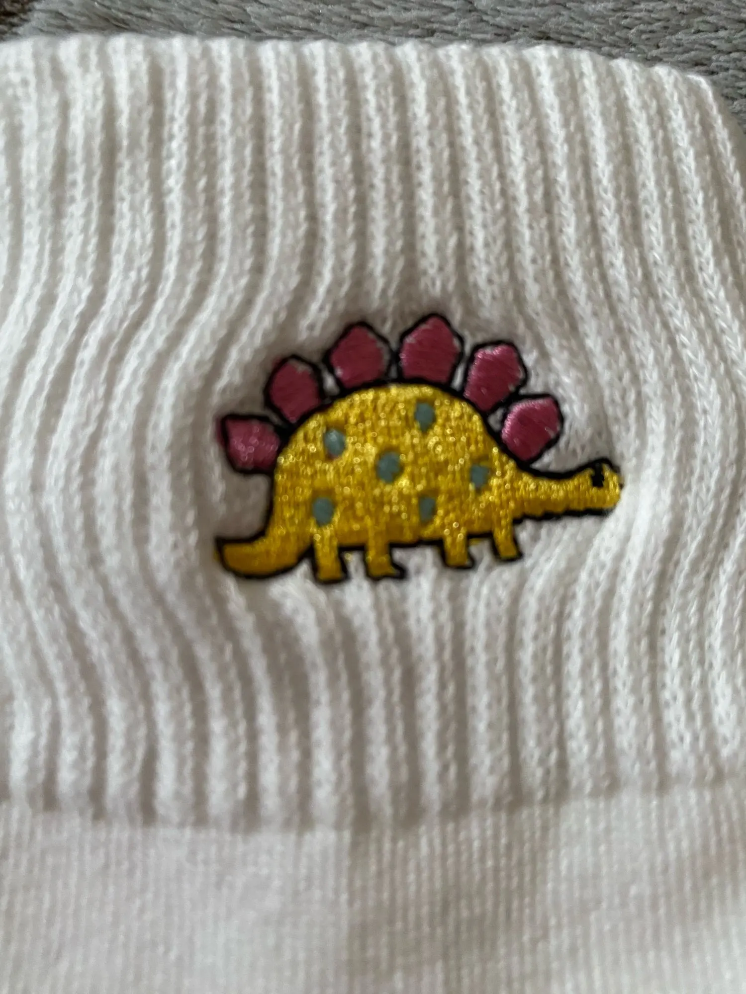 Прекрасные носочки, безумно приятные и кипелтно-белые ,качественно вышиты динозаврики- в общем все нравится,буду заказывать ещё