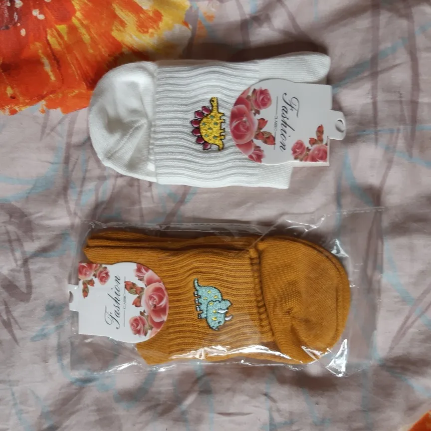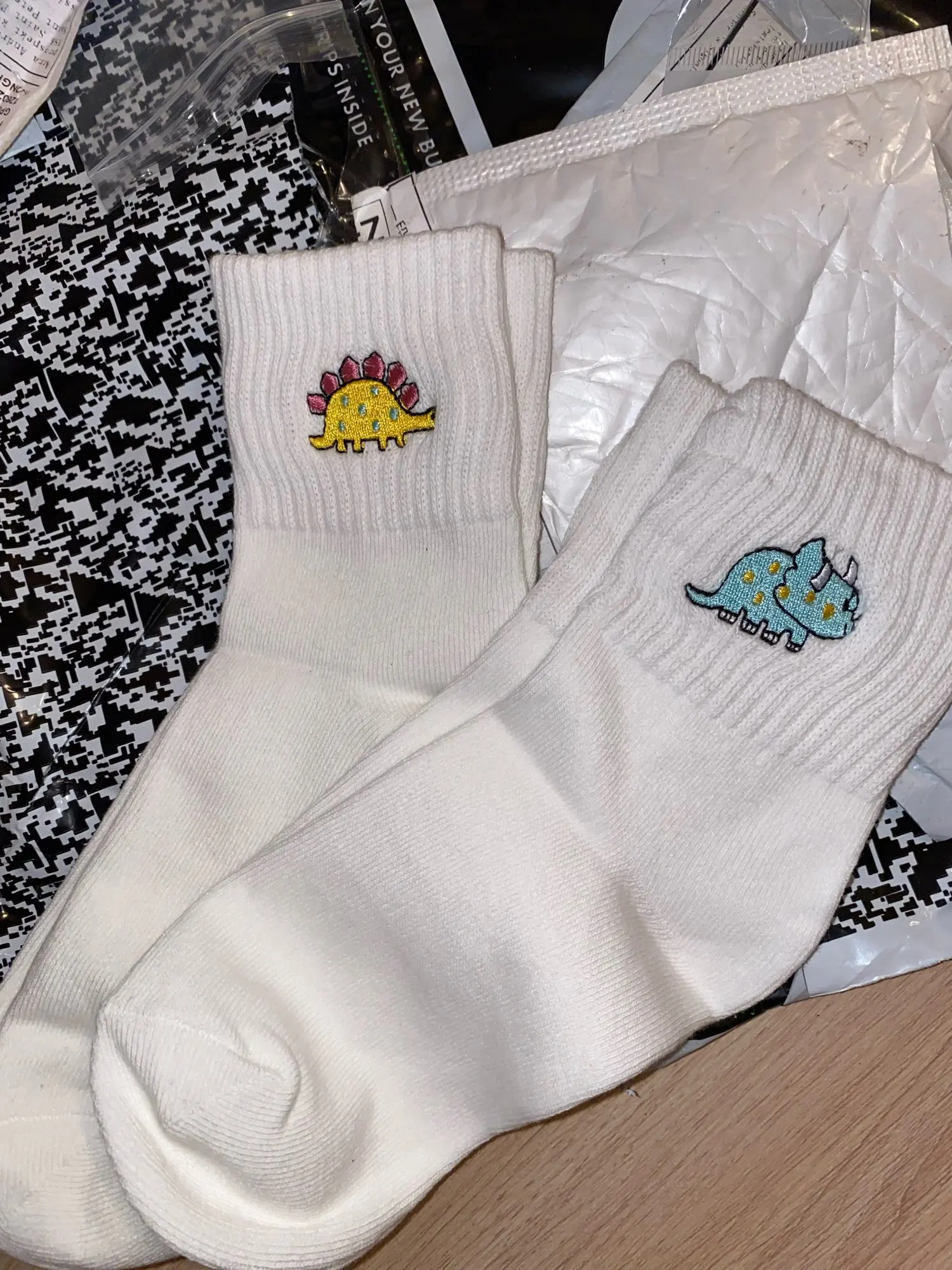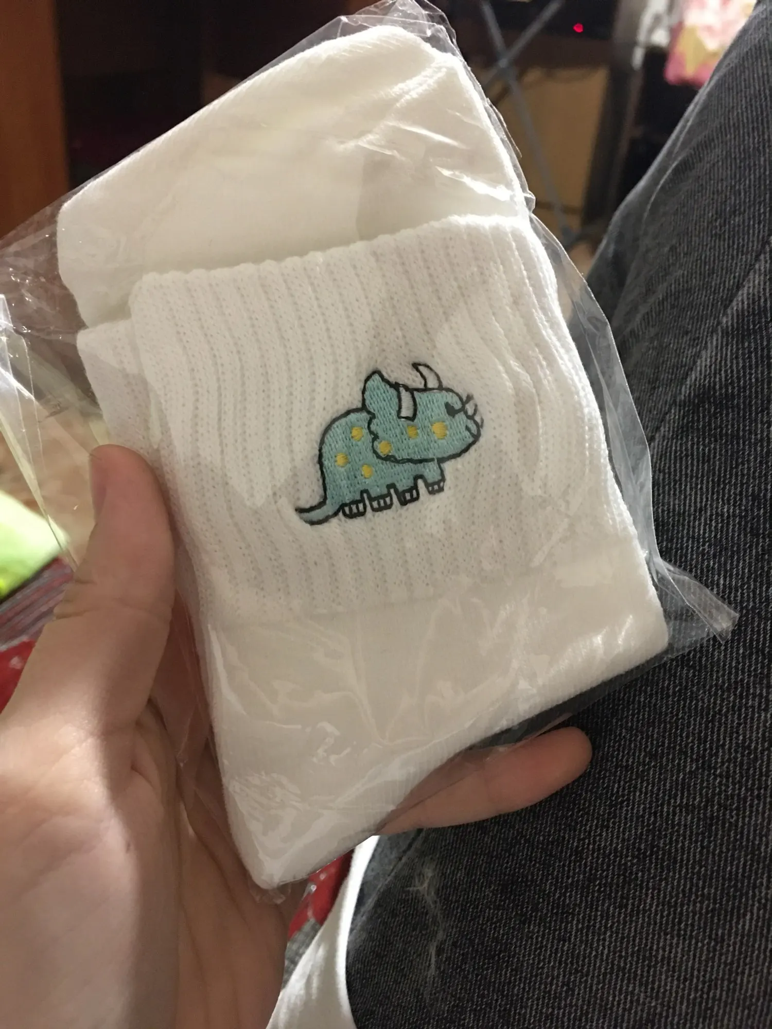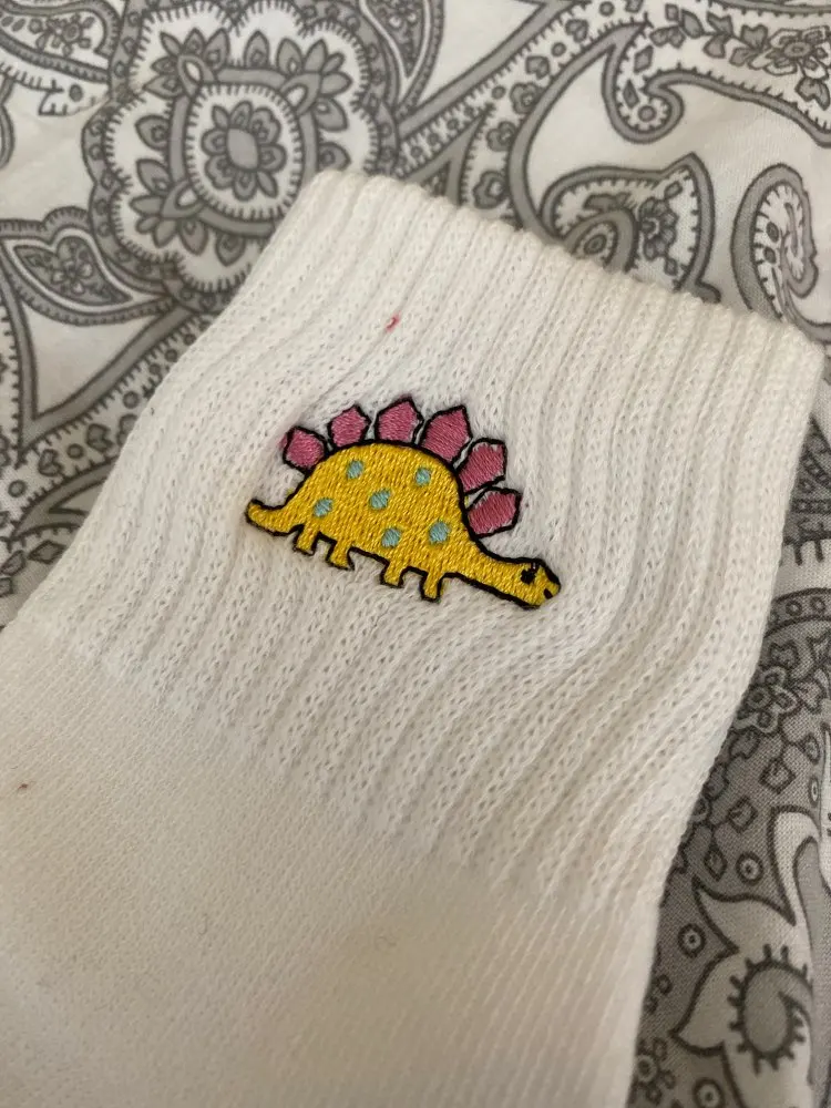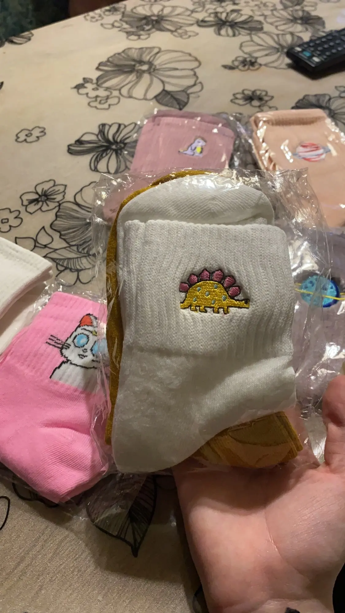 Прекрасные носочки, безумно приятные и кипелтно-белые ,качественно вышиты динозаврики- в общем все нравится,буду заказывать ещё