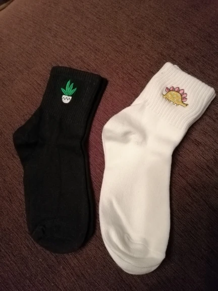 примерно в начале этого года покупала у этого продавца такие же носки, но только зелёные. мне очень понравилось качество. они достаточно плотные и теплые. но эти носки меня слегка разочаровали. качество всё тоже, но всё портит эта 'лысая' полоска на левом носке. вышивка милая без торчащий ниток. носить буду. товар отправили быстро, с продавцом не общалась. если что поменяется, дополню отзыв. inst: ae_gene_05 буду рада если заглянешь