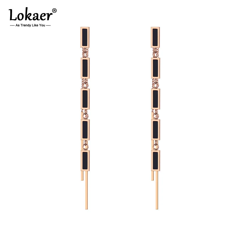 Женские длинные серьги-кисточки Lokaer, из титана и стали, в богемном стиле, розовое золото, черные акриловые, E19143