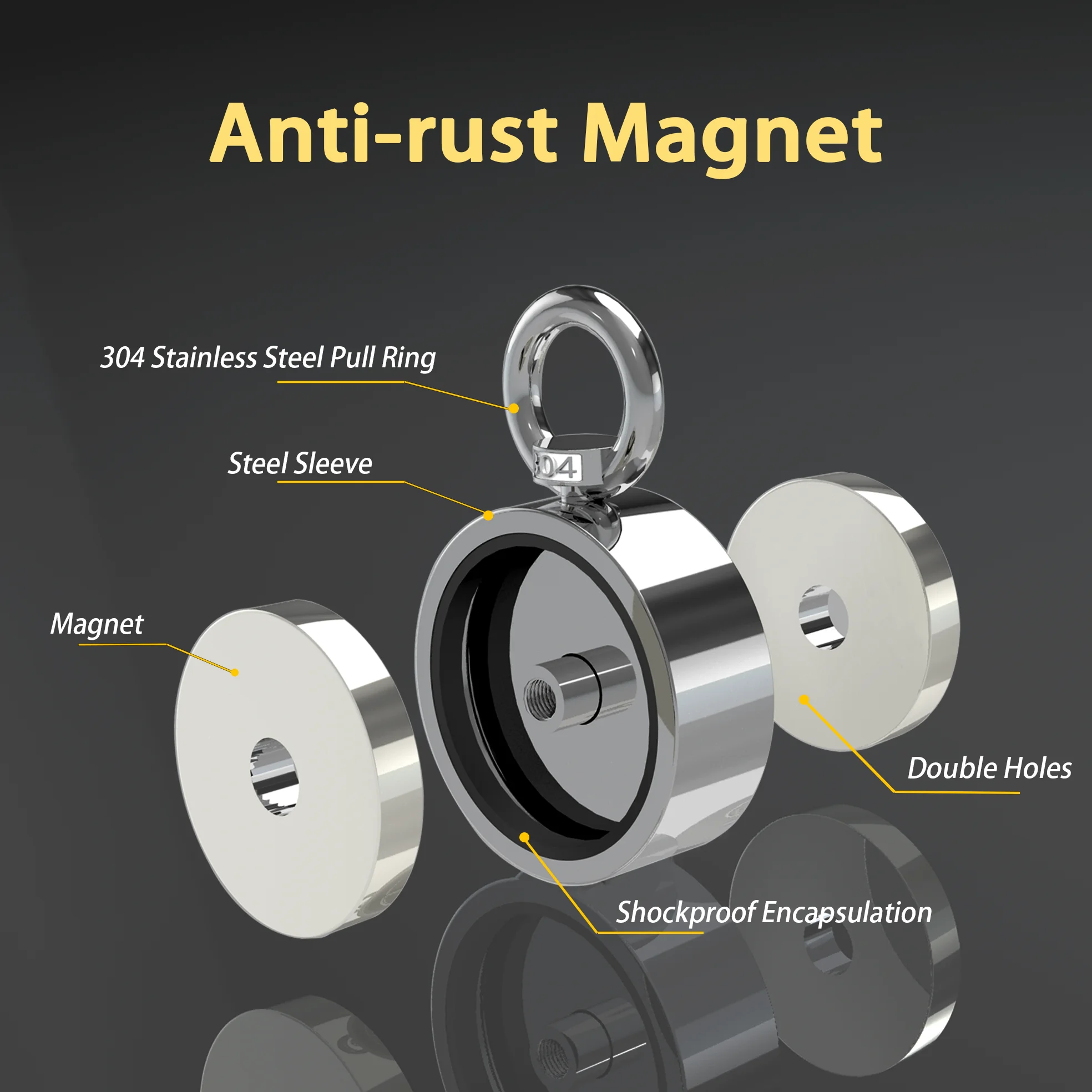 Неодимовый магнит, мощный двухсторонний спасательный магнит, рыболовный крючок, поисковый магнит, вытягивающий монтажный горшок с кольцом, отверстие, морское оборудование