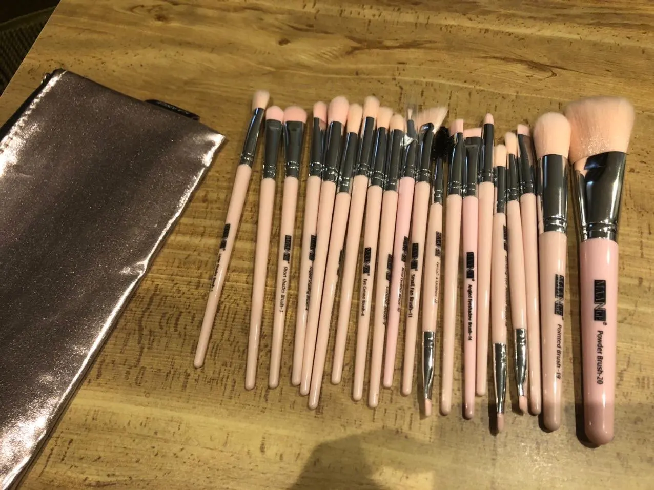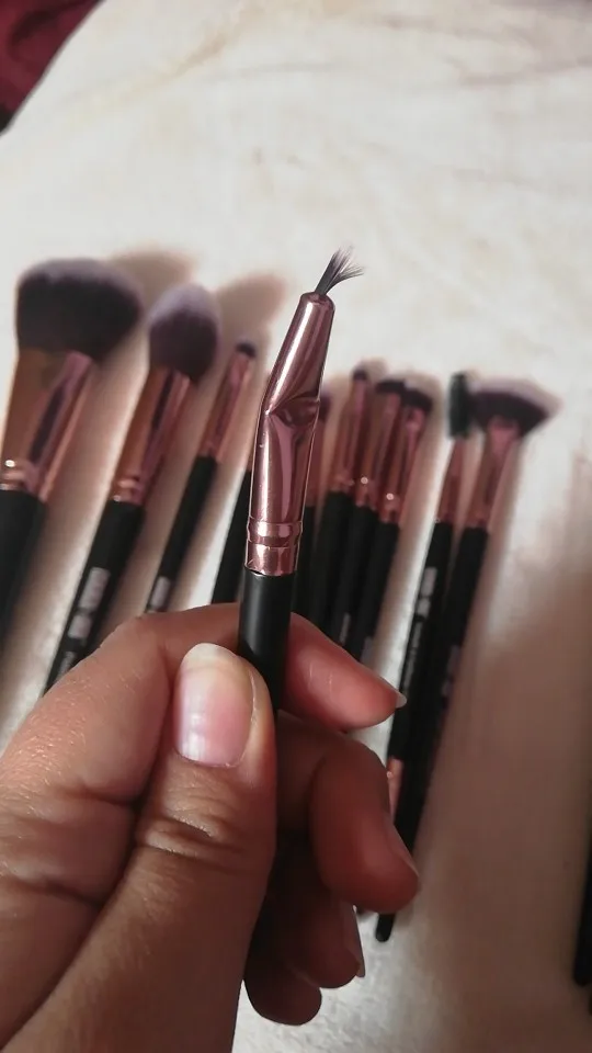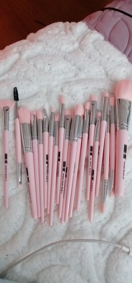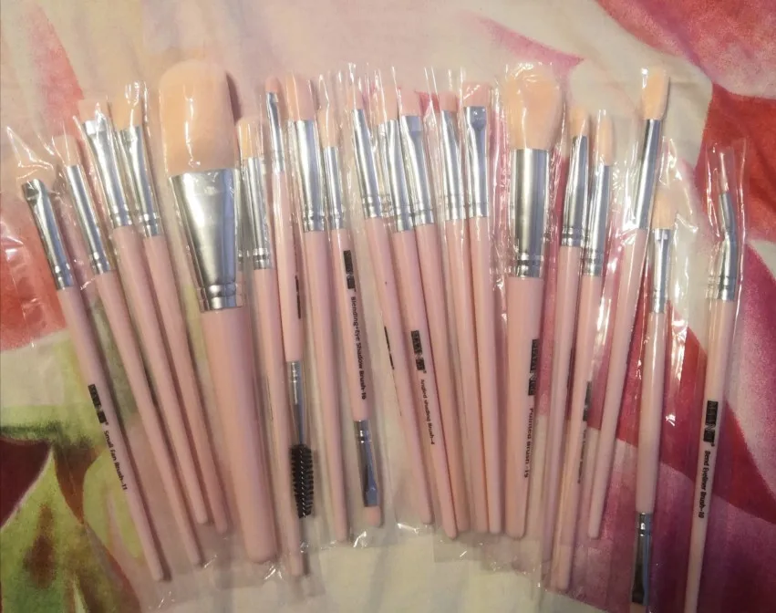 Товар получен! Все кисти в комплекте с сумкой. Кисти очень мягкие и приятные на ощупь. Они очень легкие и чувствуют себя немного дешевыми (потому что они есть). Есть несколько кистей, которые не самые лучшие, например, Веерная кисть (см. Изображение ниже) и кисть №7, которая была немного односторонней (см. Изображение ниже), но я думаю, что они в порядке. В целом, продукт более чем стоит своей цены! Купил бы снова.