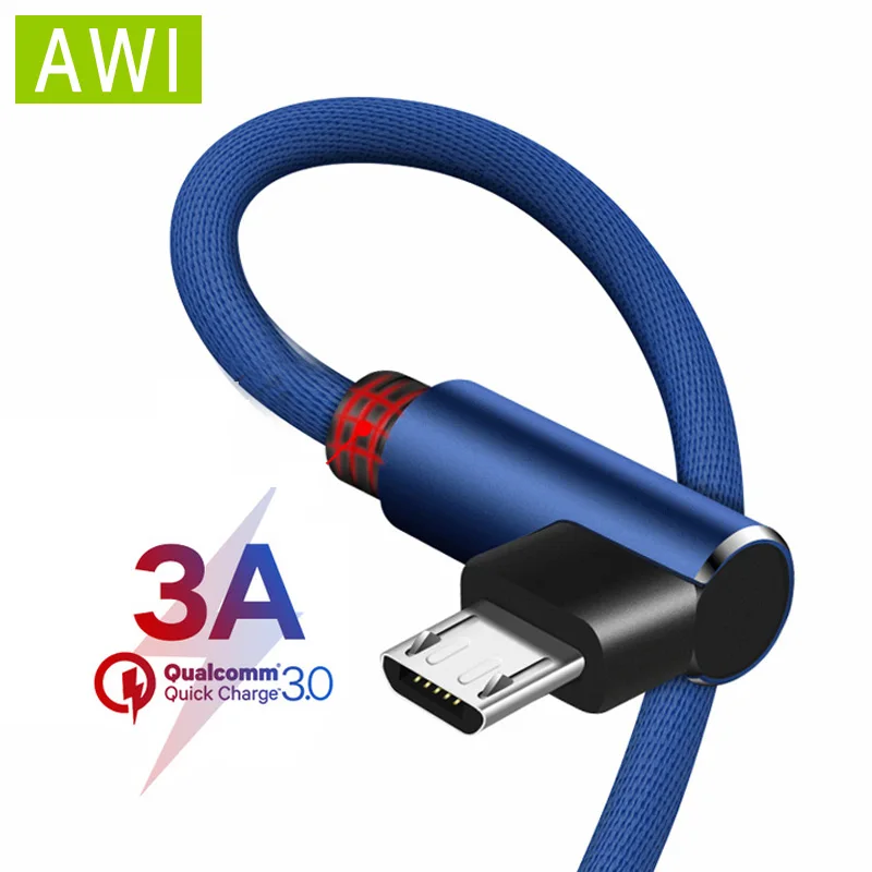 AWI Micro USB кабель 2A быстрое зарядное устройство USB шнур 90 гра...