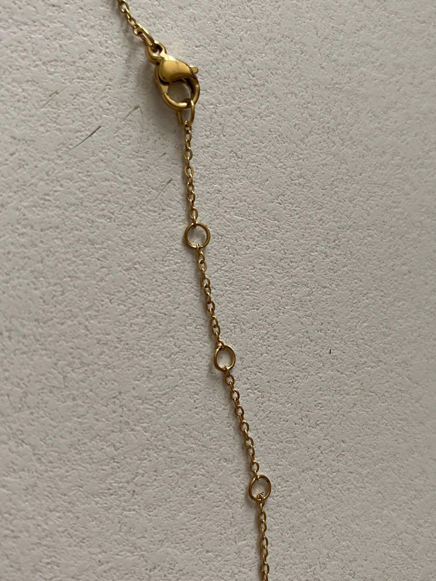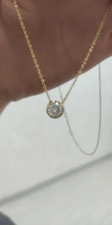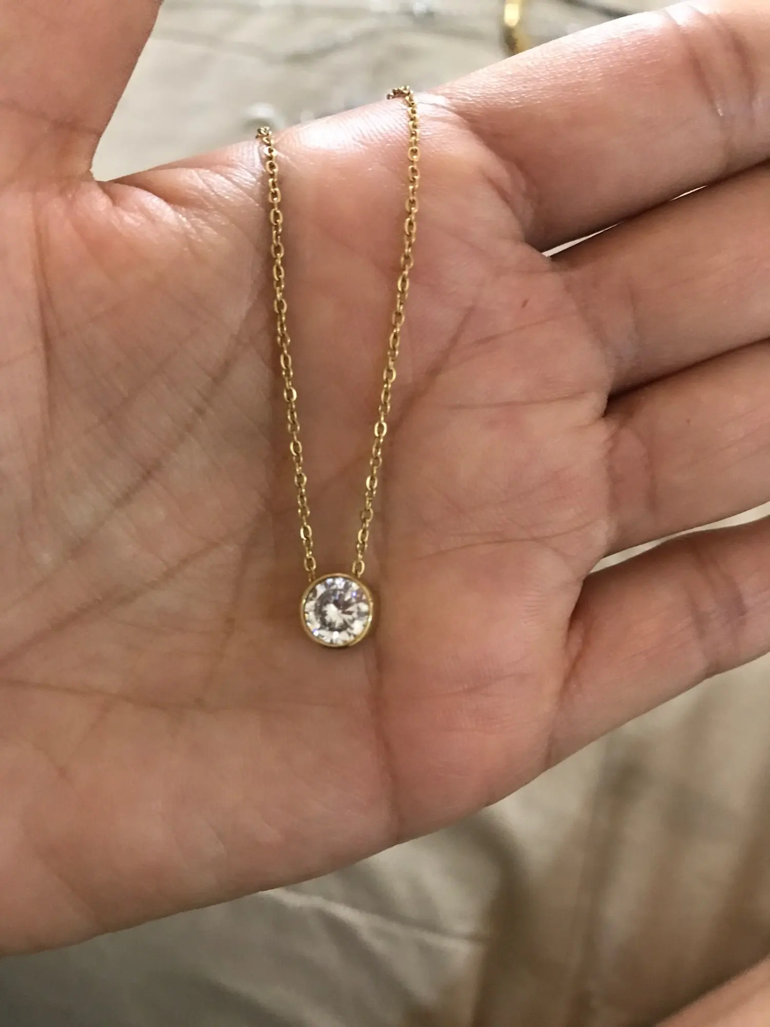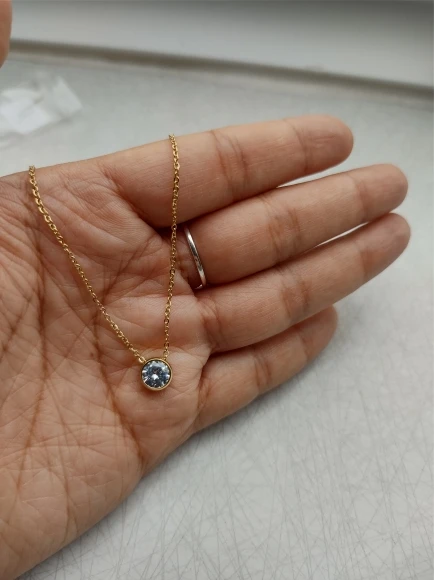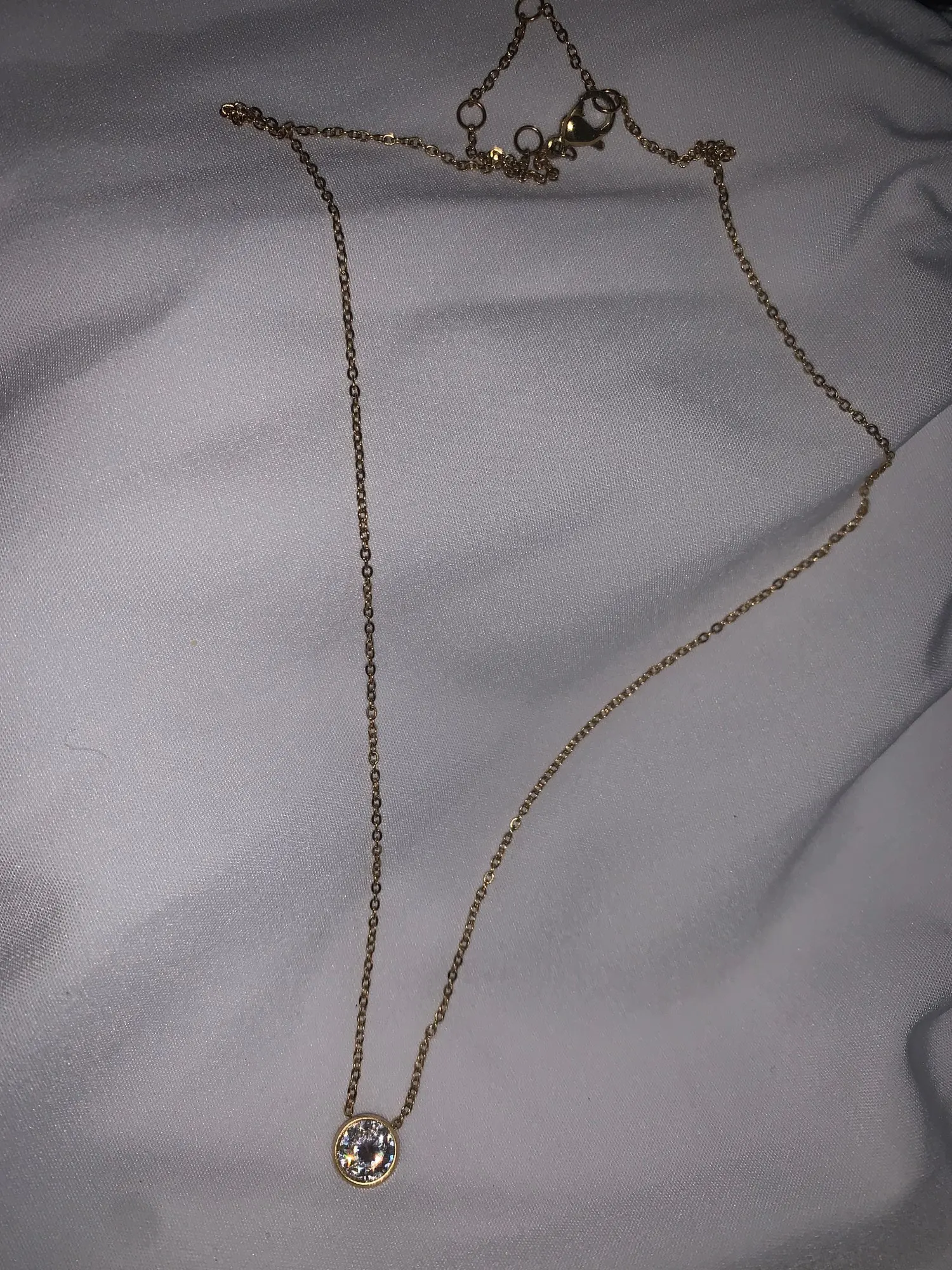 Gorgeous delicate gold color necklace in the Elsa Peretti diamond-by-the-yard-style (the stone is just a little bit less delicate of course). It is a lovely classy piece to wear alone or in combination with other necklaces. Great price, fast shipment, safe pa ckaging. I will certainly purchase more from this seller in the near future. Sending a picture of this necklace soon.