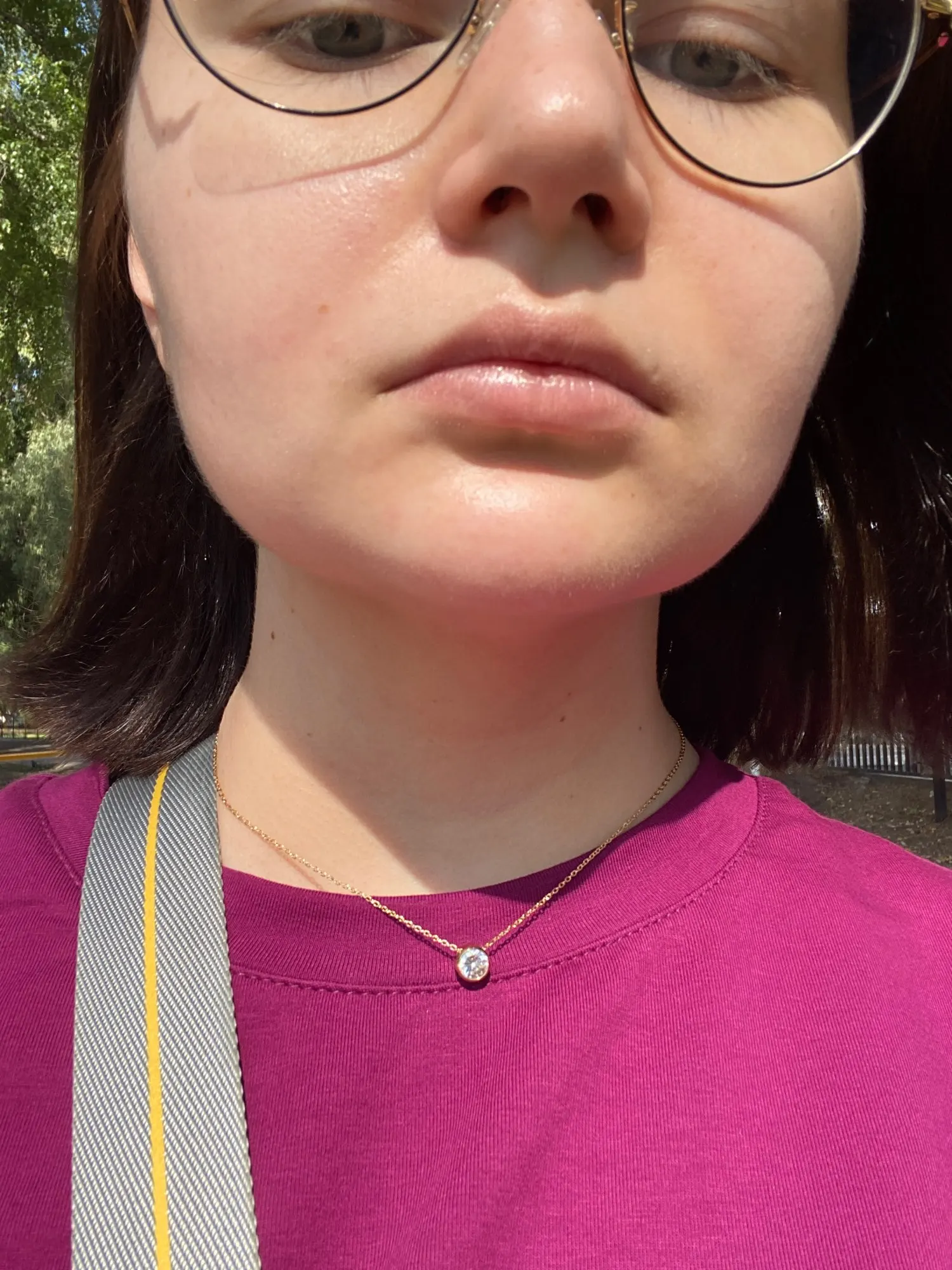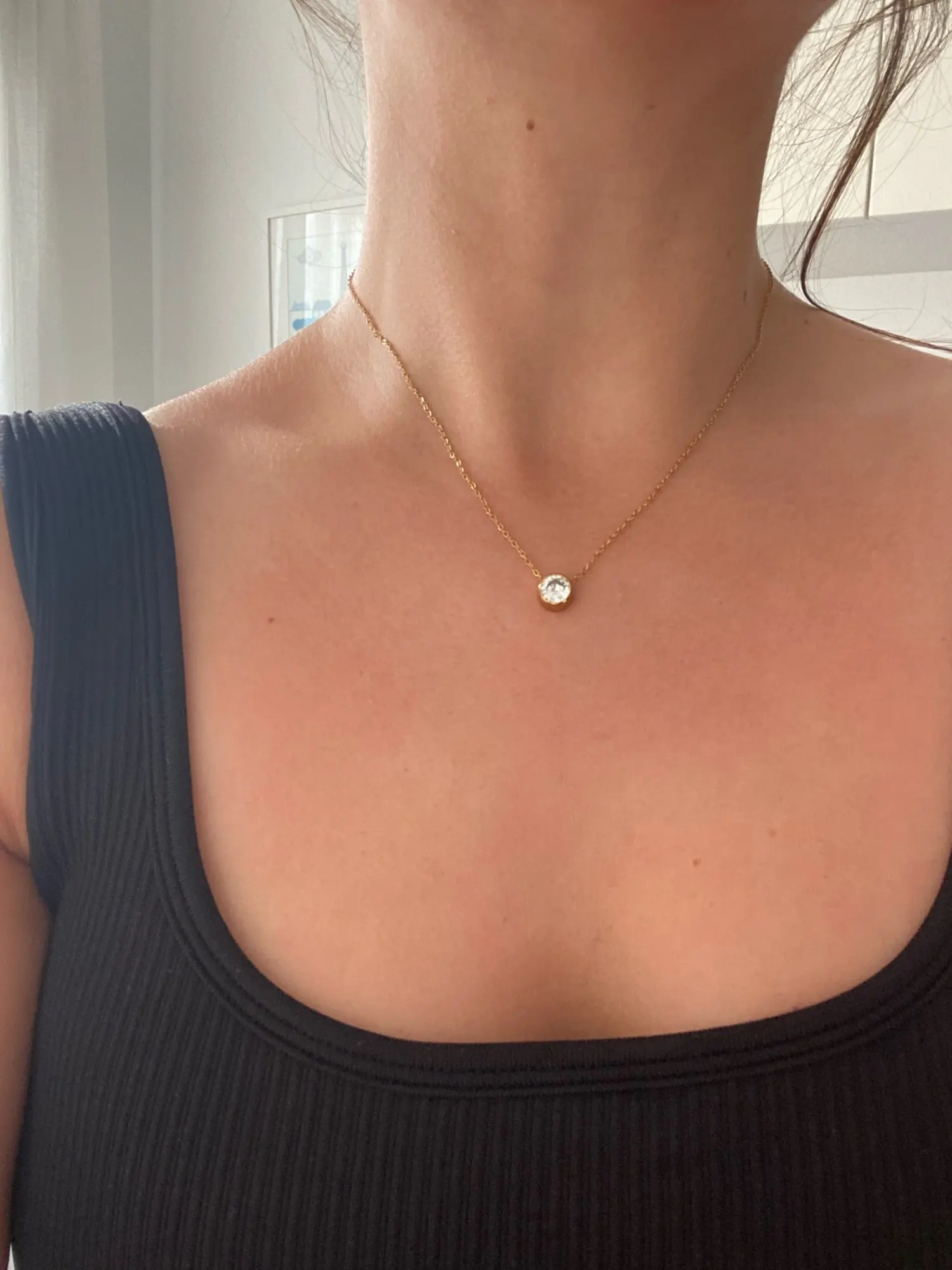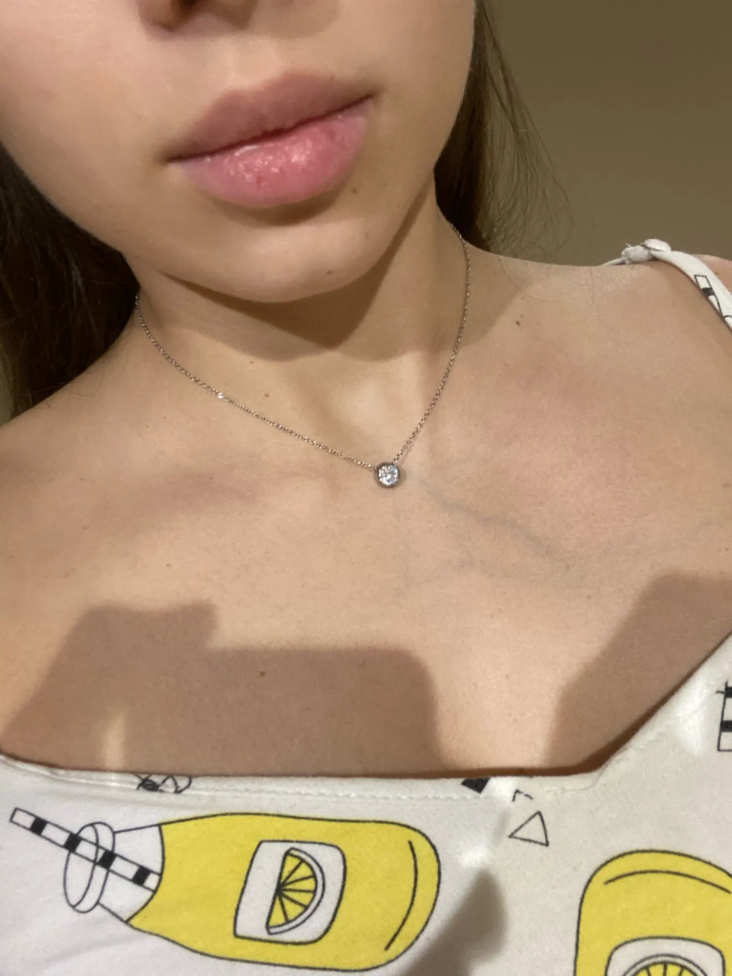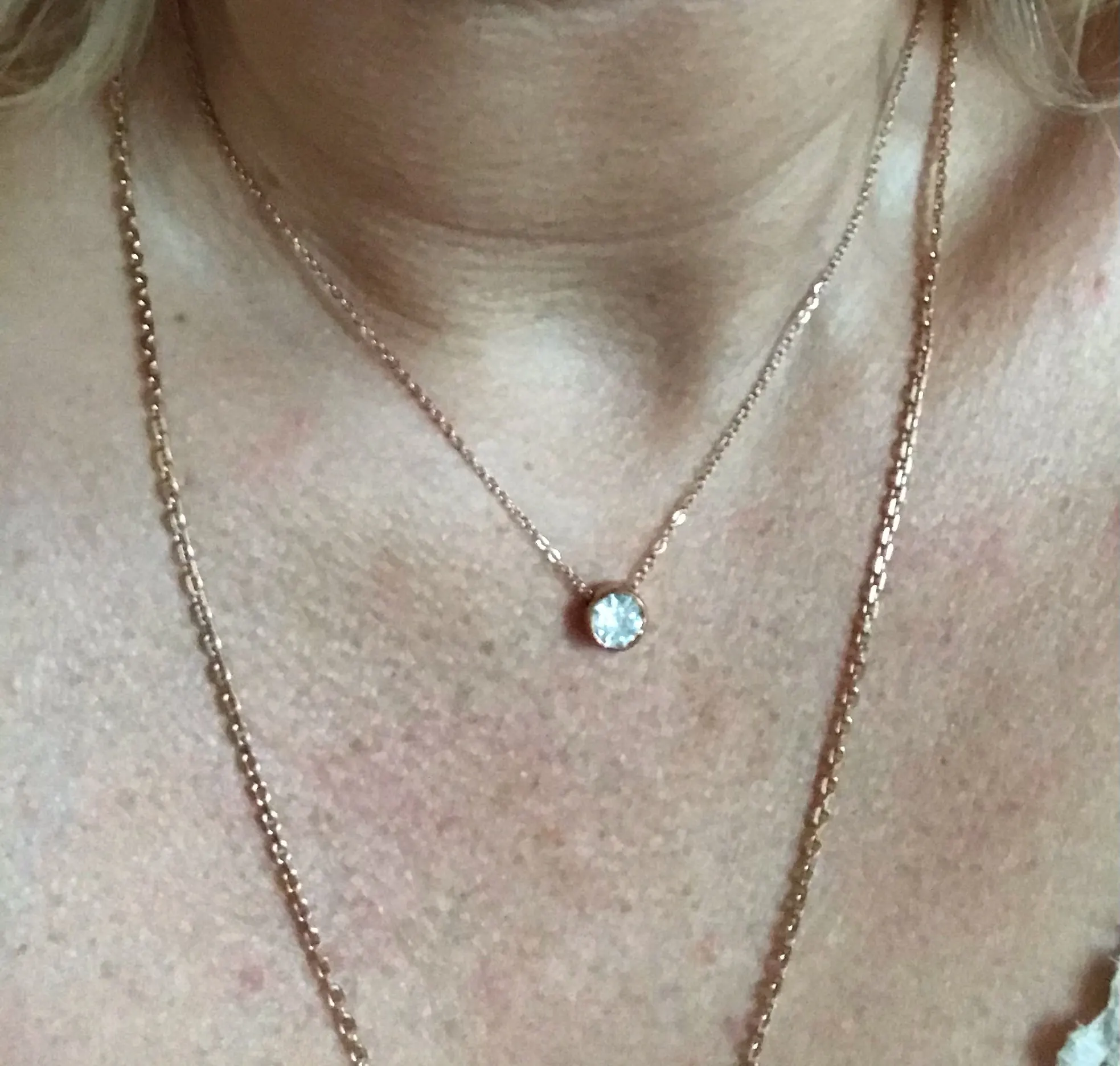 Gorgeous delicate gold color necklace in the Elsa Peretti diamond-by-the-yard-style (the stone is just a little bit less delicate of course). It is a lovely classy piece to wear alone or in combination with other necklaces. Great price, fast shipment, safe pa ckaging. I will certainly purchase more from this seller in the near future. Sending a picture of this necklace soon.