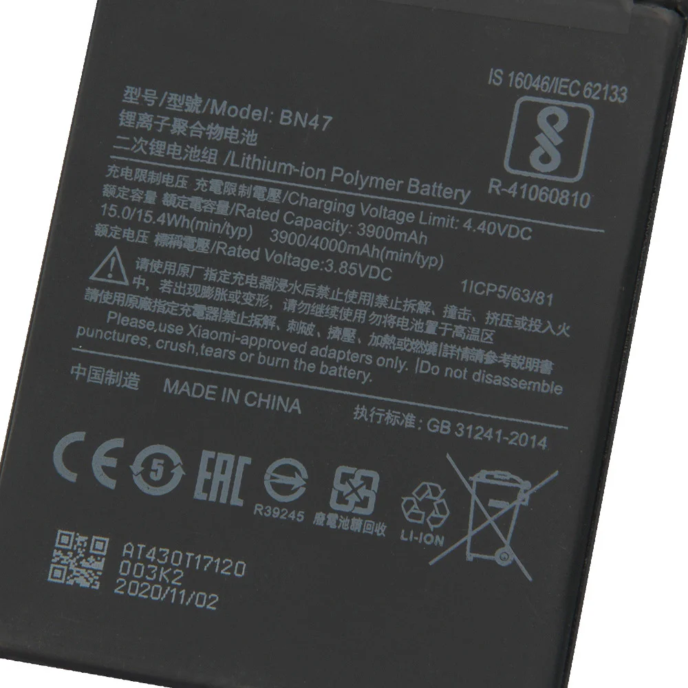 Аккумулятор BN47 для Xiaomi Redmi 6pro, Mi A2 Lite, Hongmi 6 Pro, Redrice 6pro, BN47, 3010 мА ч, инструменты