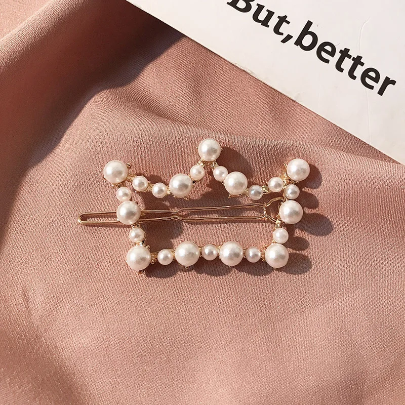 Женская заколка для волос с жемчугом в Корейском стиле, модная заколка для волос с жемчугом, аксессуары для головного убора, геометрическое сердце, круглая форма