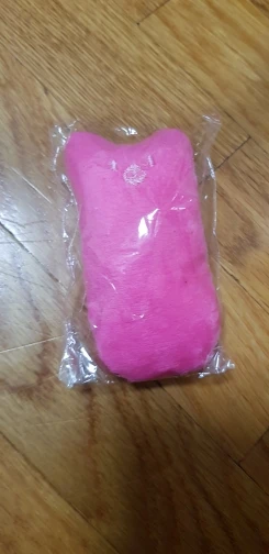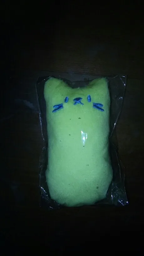 Игрушка небольшая по размеру, внутри шуршит кулёчек и пахнет травами, коту понравилась, кусает её, пытается прогрызть, но материал крепкий. Отправил быстро, спасибо продавцу!