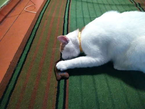 Вы сломали мне ленивого кота, не знаю что вы зашили в игрушку но я кота не узнаю, он просто счастлив:))
