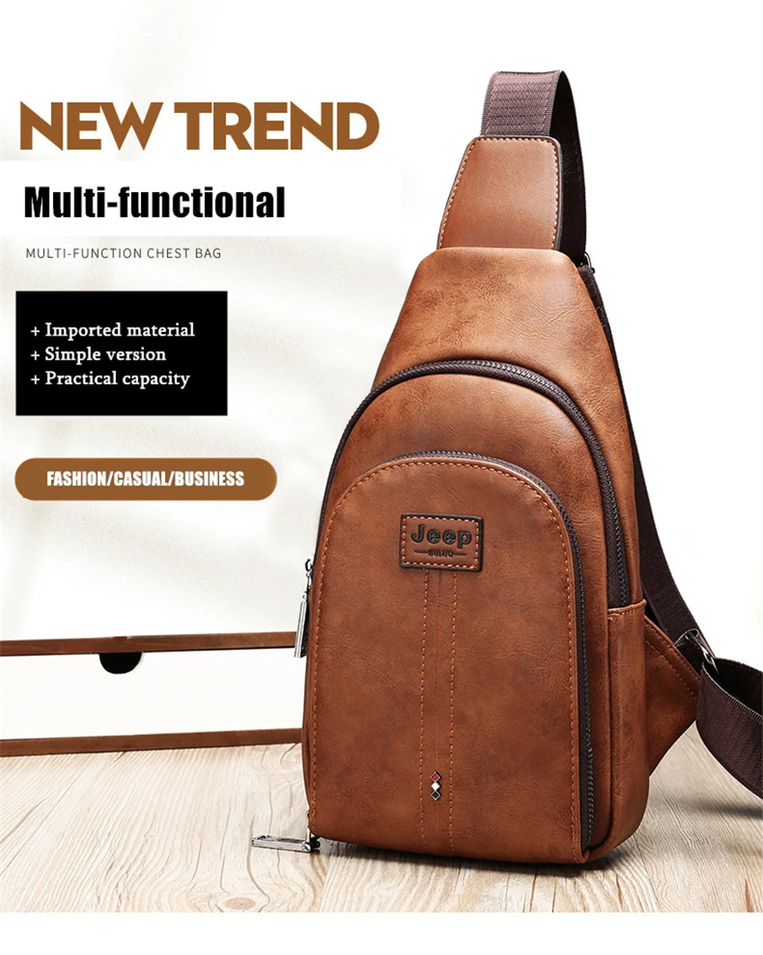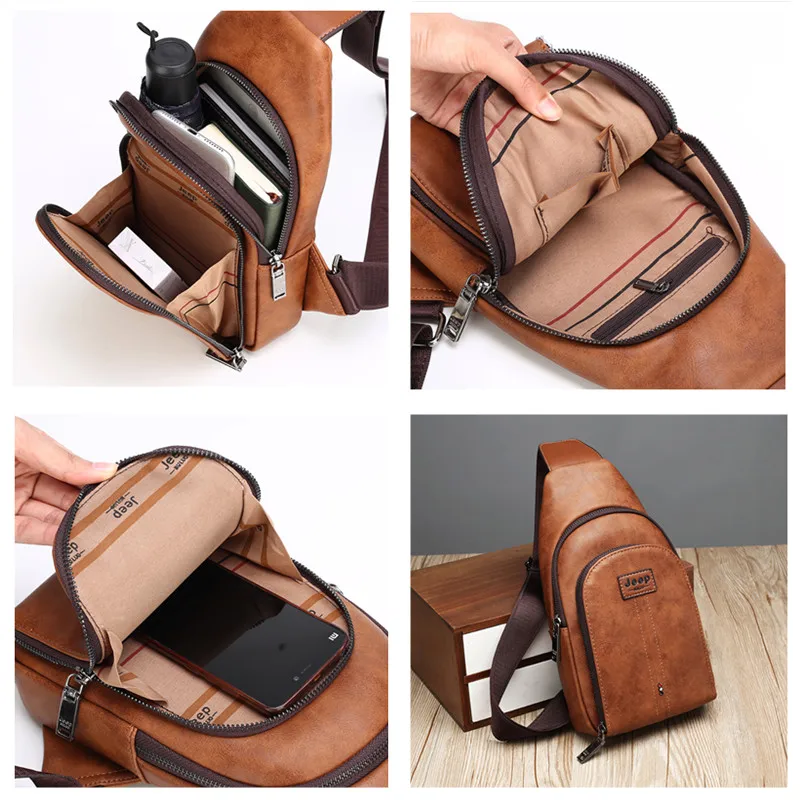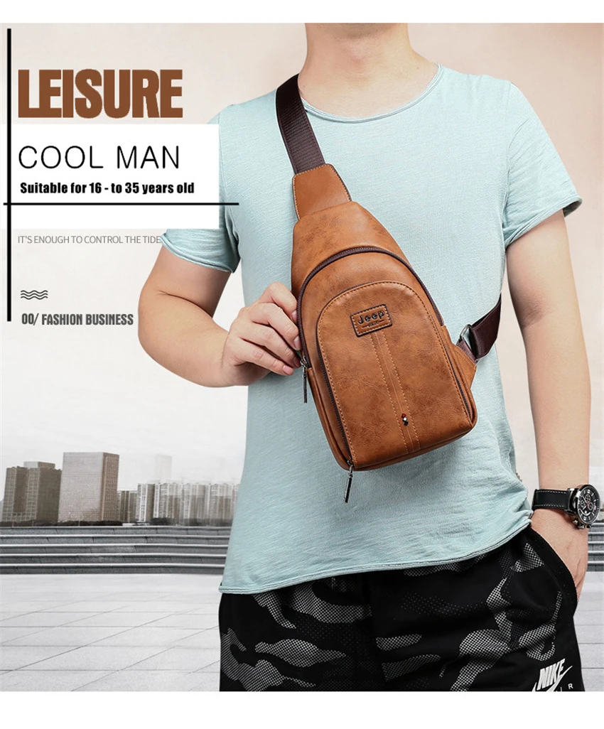 Мужская сумка-слинг JEEP BULUO, черная винтажная сумка из спилка, на плечо, для студентов и подростков, 2019