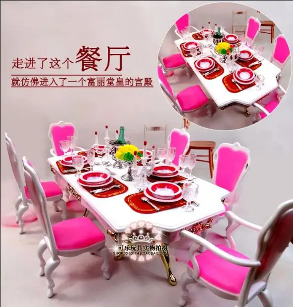 Мода для Барби Ресторан Посуда Барби принцесса кукла семейный ужин обеденный стол еда стул дом мебель аксессуары