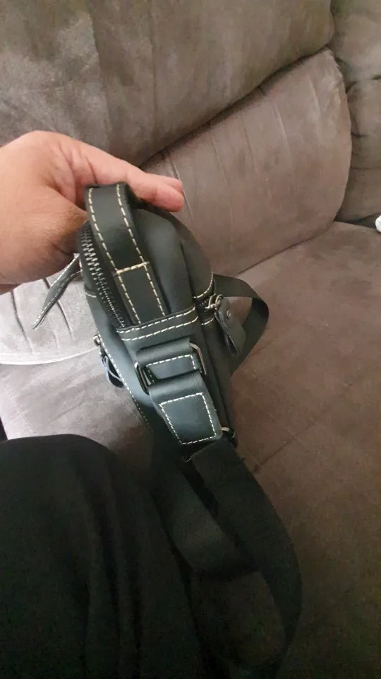 сумка хорошего качества, все прошито ровно, нитки не торчат, кожа мягкая, сама сумка вместительная. из минусов то что замок не по середине а смещен к передней части из за этого немного затруднён доступ к документам и карману(внутренний) который расположен на тыльной стороне сумки