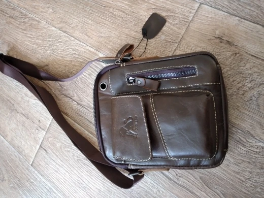 Хороша сумка! Отец рад. По размерам не большая, но документы телефон все помещается))