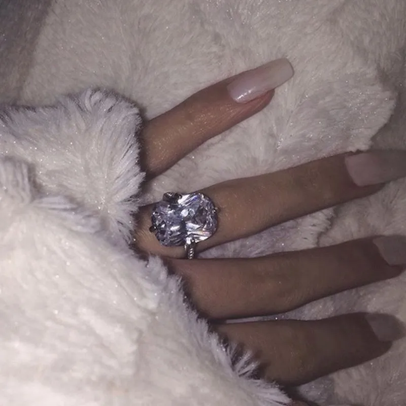 Сверкающее женское кольцо обещания из стерлингового серебра 925 пробы 5 карат квадратные AAAA фианит обручальные кольца для женщин Свадебные эффектные ювелирные изделия для вечерние Ринок