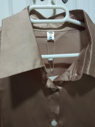 Отличная рубашка, без дешёвого блеска.В январской коллекции Z*ra была точно такая же за 3к.Размер М идёт на S, имейте это в виду.Если хотите оверсайз, то надо прям большой размер брать.рукава на 170см только только, если вы выше,то будут короткие.
