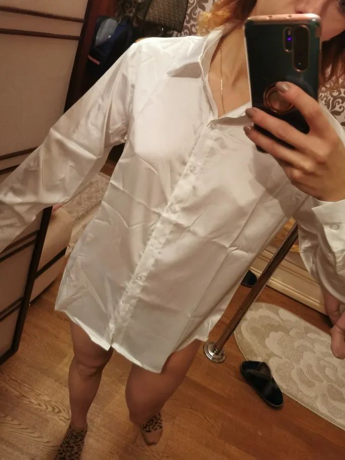 Рубашка очень хорошая! С размером не угадала, очень большой, получился супер оверсайз. Буду ушивать, Хорошо что сама умею! Мои параметры для ориентации покупающих : Грудь 96, талия 76, бедра 92., плечи 40, рост 159см , вес 53 кг. Впечатление как будто мужскую рубашку купила, думаю лекала от мужской взяты. Заказала XL, а надо было L или M. В общем девченки, на вкус и цвет.....Моя подруга мерила, у нее размер 50-52, ей в самый раз, а мой размер 46. На мне смотрится как на представленной модели, но я люблю слегка свободно, короче, на три размера больше смотрится. Пришла быстро! Рекомендую! Смотрится богато!