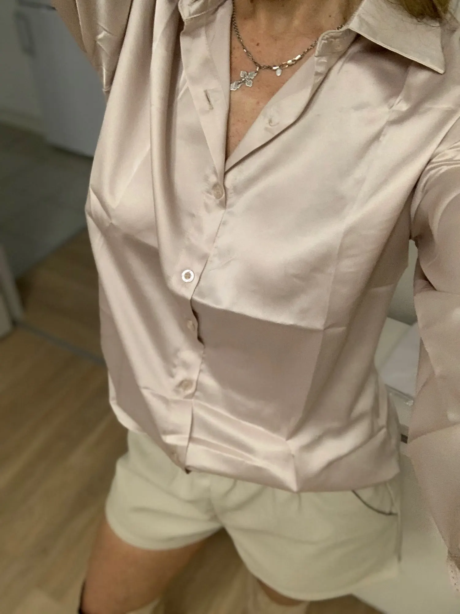 Блузка Женская атласная с длинным рукавом, на пуговицах